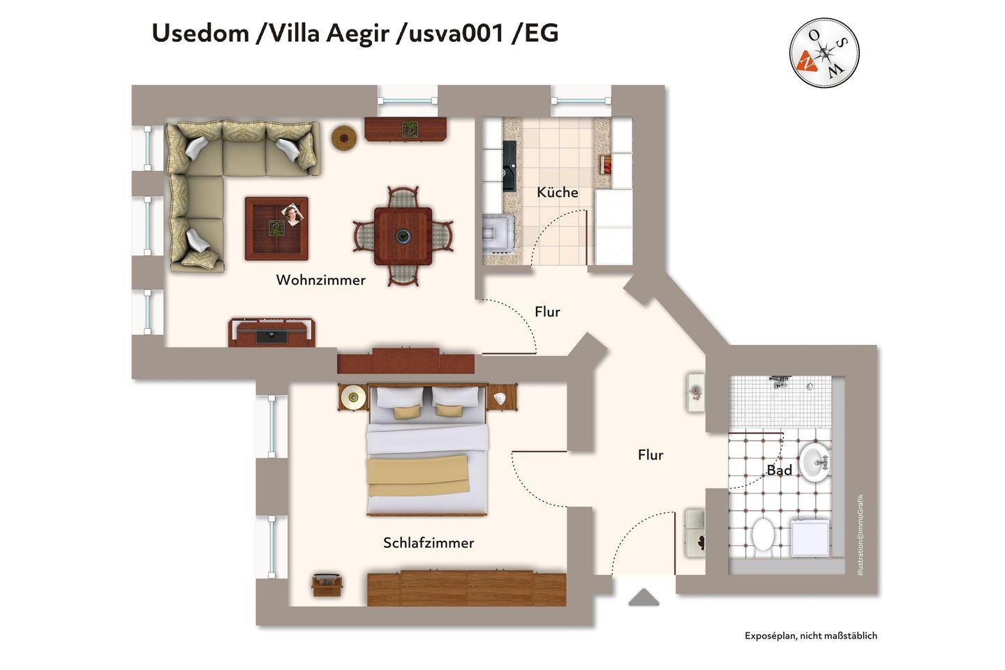 Die „Villa Aegir“ steht für Usedomer Bäderromantik im Ostseebad Heringsdorf. Das 58 qm große 2-Zimmer-Apartment mit Terrasse ist für bis zu 4 Personen geeignet.