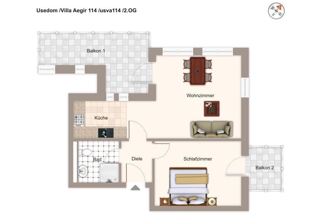 Hübsches Apartment mit zwei Balkonen, nur 100 Meter vom kilometerlangen Ostseestrand in Heringsdorf entfernt.