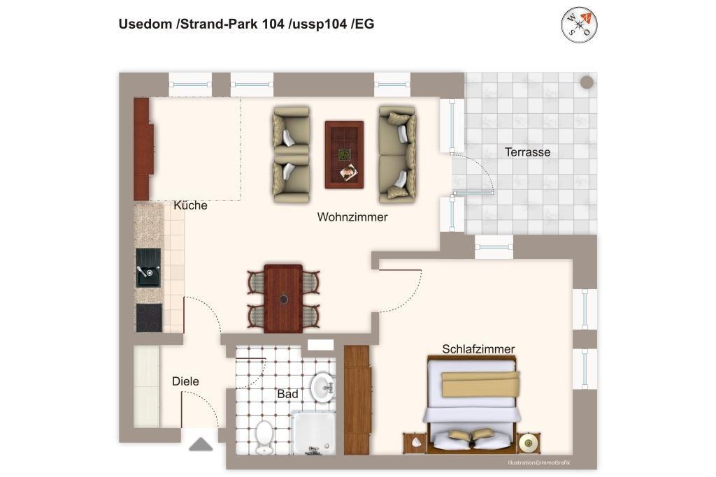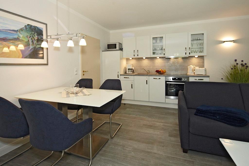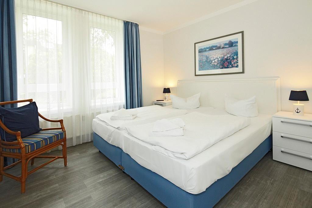 Das 2-Zimmer Apartment eignet sich mit 45 qm und einer Terrasse für 4 Personen. Besonders hervorzuheben sind der direkte Strandzugang und die schöne Lage inmitten einer Parkanlage.