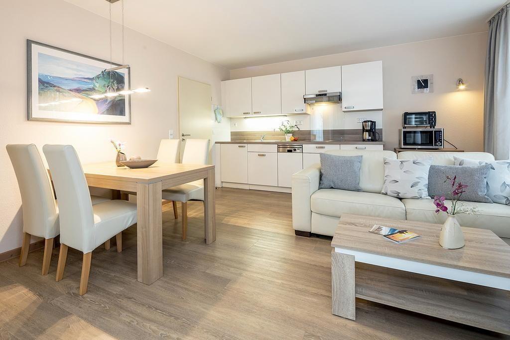 Die geschmackvoll eingerichtete 2-Zimmer Ferienwohnung mit 45 qm und einem Balkon ist für bis zu 3 Personen geeignet und liegt direkt an der Strandpromenade.