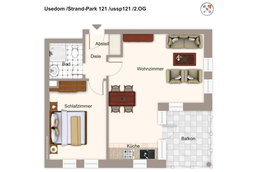 Apartments in direkter Strandlage bietet Ihnen die Ferienanlage „Strand-Park“ in Heringsdorf: In der 2-Zimmer Ferienwohnung mit Balkon finden auf 45 qm 4 Personen Platz zum Erholen an der Ostsee.