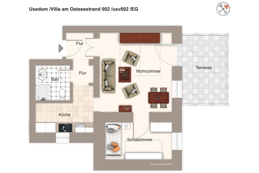 2-Zimmer Ferienwohnung in Heringsdorf mit Terrasse, WLAN und nur 50 m zum feinen Sandstrand.