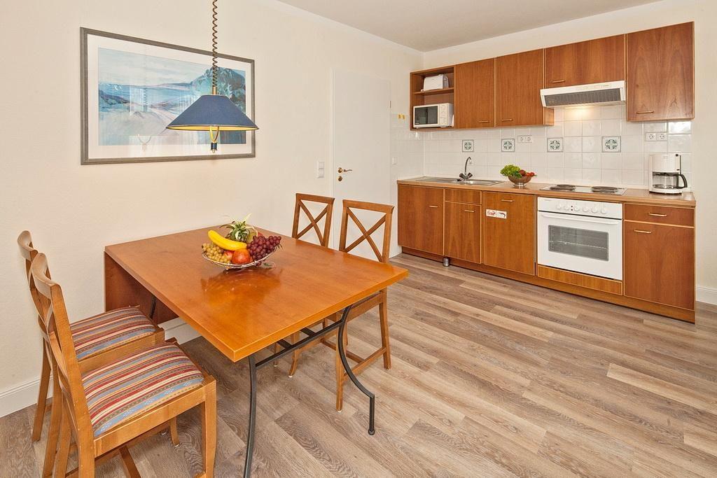 Die helle Nichtraucher-Ferienwohnung mit Duschbad verfügt über kostenfreies WLAN und besteht aus einem Schlafzimmer mit Doppelbett, einem Wohnbereich mit Doppelschlafcouch, Flatscreen-TV, DVD-Player und HiFi-Anlage sowie aus einem Balkon mit viel Sonnenschein am Vormittag. Von hier aus genießt ihr einen idyllischen Blick ins Grüne und auf die wunderschöne, historische Villa des 'Strand-Park'. Das Apartment beinhaltet eine voll ausgestattete offene Küche mit Wasserkocher, Kaffeemaschine, Toaster, Herd mit Backofen, Geschirrspüler, Mikrowelle und einem Kühlschrank mit Gefrierfach.