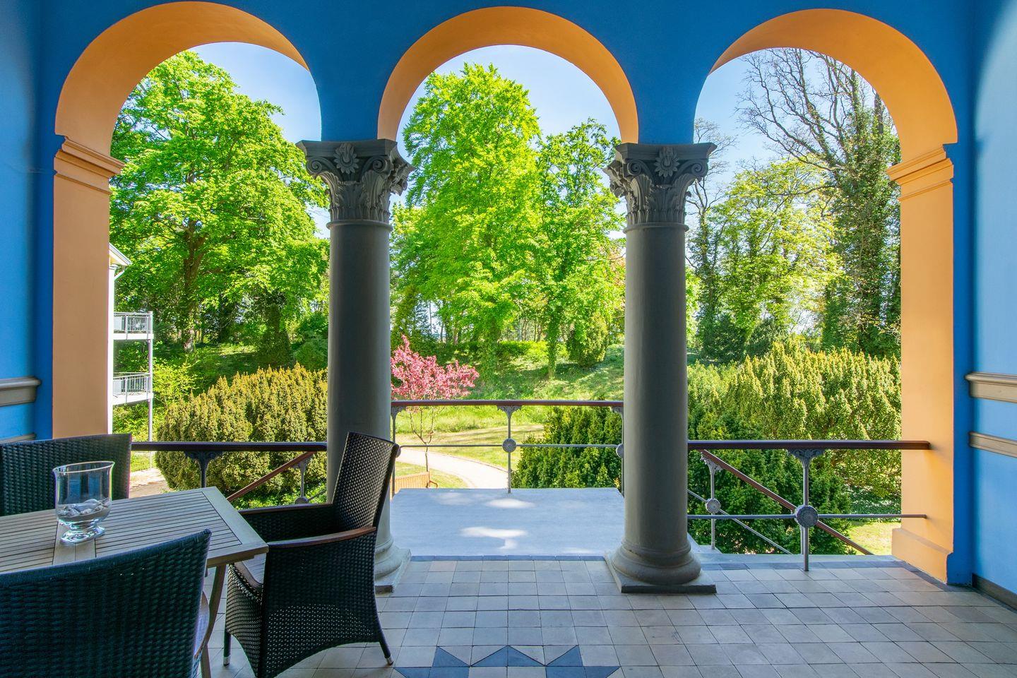 Villen-Apartment in Heringsdorf mit Loggia, Parkblick und direktem Strandzugang.