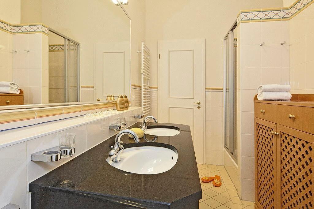 Das Nichtraucherapartment verfügt über kostenfreies WLAN und eine voll ausgestattete offene Küche mit Geschirrspüler, Kühlschrank mit Gefrierfach, Kaffeemaschine, Toaster, Wasserkocher, Ceranherd mit Backofen und Mikrowelle. Zwei Schlafzimmer beinhalten ein Doppelbett bzw. zwei Einzelbetten. Im Wohnbereich mit dekorativem Elektrokamin stehen euch ein Flatscreen-TV, ein CD-Player, Radio und eine Auswahl an Spielen zur Verfügung. Das Badezimmer mit Dusche und Badewanne beinhaltet WC, Doppelwaschbecken, Handtuchwärmer, Föhn und Kosmetikspiegel und verfügt über Tageslicht. Der hübsche und sonnige Balkon in Süd-West-Lage mit Blick auf die benachbarten Villen ist mit Gartenmöbeln ausgestattet. Überdies steht euch ein kostenloser Strandkorb in der Saison am Strand zur Verfügung.