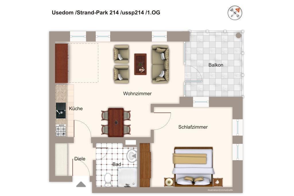 Charmante 2-Zimmer-Ferienwohnung direkt am Strand von Heringsdorf mit Balkon und Parkblick.