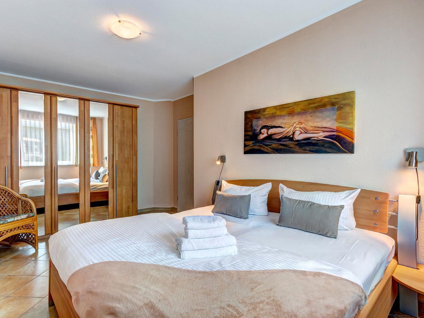 Das separate Schlafzimmer überzeugt durch seine angenehme Atmosphäre und sorgt mit einem komfortablen Bett für einen erholsamen Schlaf. Hier können Sie Energie für den nächsten Tag tanken.
