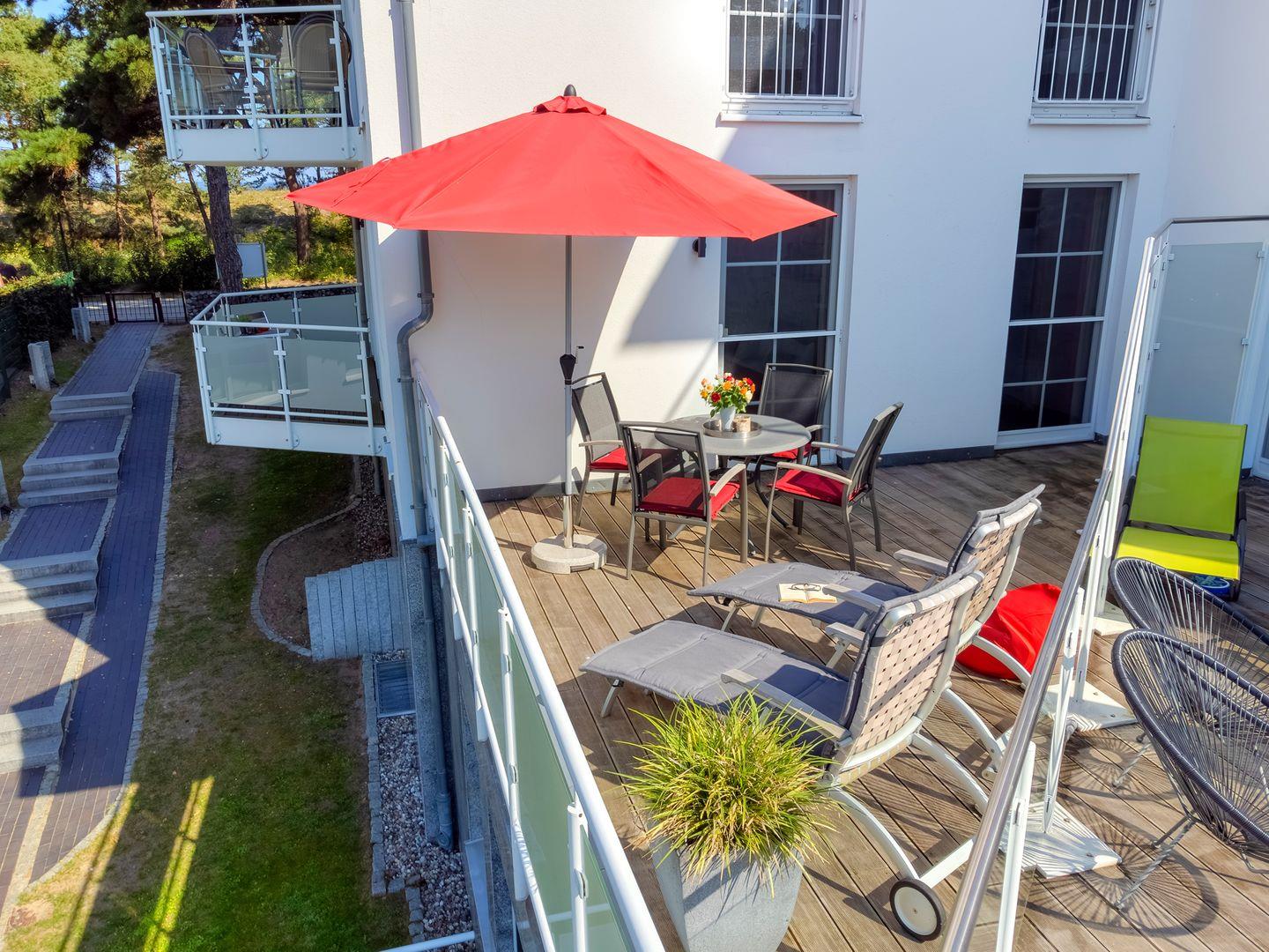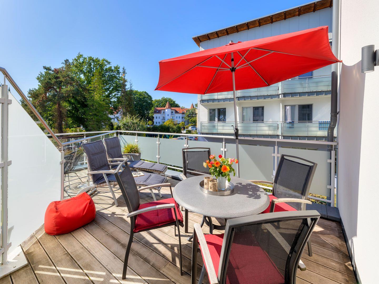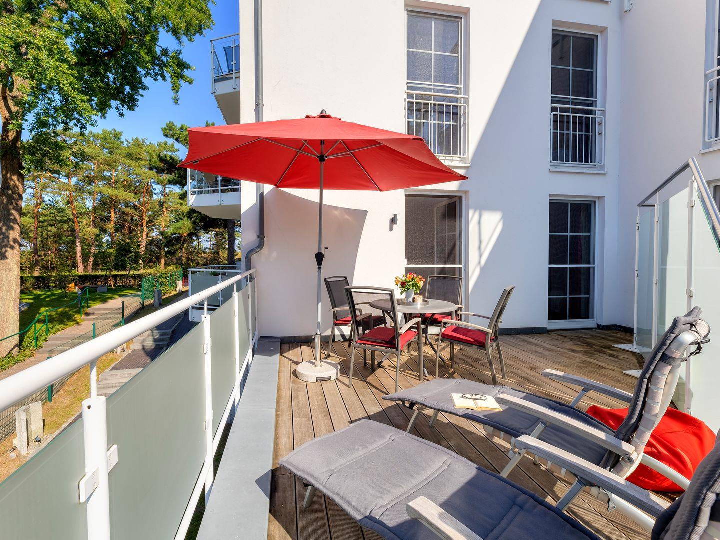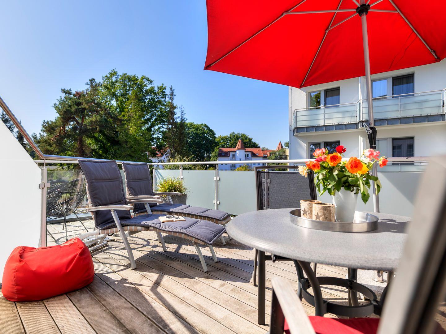 Moderne 3-Zimmer-Ferienwohnung mit großer Sonnendachterrasse und Strandblick in Heringsdorf.