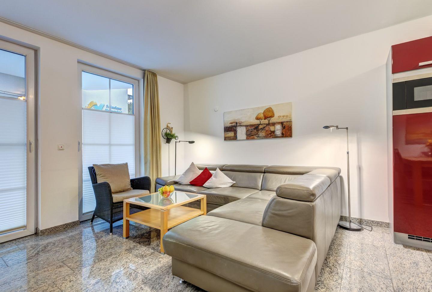 Genießen Sie diese mit 5-DTV-Sternen zertifizierte, moderne und individuell eingerichtete 3-Zimmer Ferienwohnung mit der über 20 qm großen Sonnendachterrasse nach Südwesten und dem Westbalkon mit Blick zur Strandpromenade. Hier können Sie herrlich entspannt frühstücken, essen oder sonnenbaden. Die im 1. Obergeschoß gelegene, komfortable Wohnung verfügt über beheizte Granitfußböden und edle Parkettfußböden in den 2 Schlafzimmern, sowie ein geräumiges Wohn -und Esszimmer und eine hochwertige, voll ausgestattete Küche.