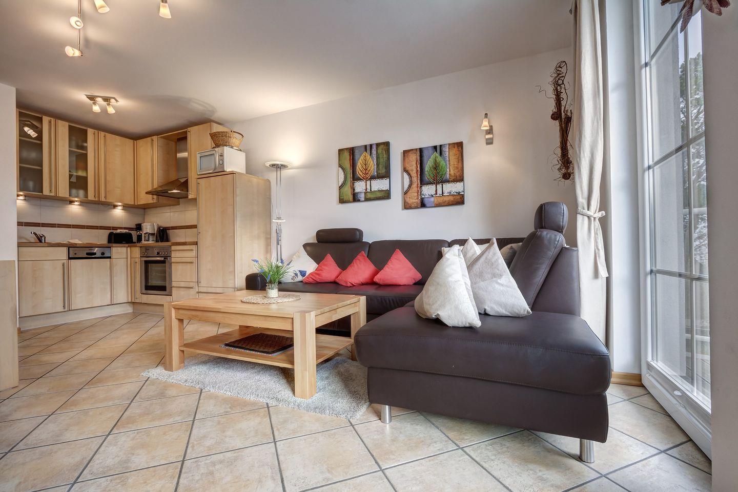 Herzlich willkommen in der großzügigen, mit 5 DTV-Sternen zertifizierten 3-Zimmer-Wohnung im 2. Obergeschoss der Ostseeresidenz Gorki-Park. Die stilvolle Unterkunft überzeugt mit einem lichtdurchfluteten Wohn- und Essbereich sowie zwei Schlafzimmern, jeweils ausgestattet mit komfortablen Doppelbetten, die ein unvergleichliches Wohlfühlambiente schaffen. Die moderne, hochwertige Einrichtung der Wohnung sorgt für ein erstklassiges Wohngefühl. Die voll ausgestattete Küche erfüllt sämtliche Ansprüche.