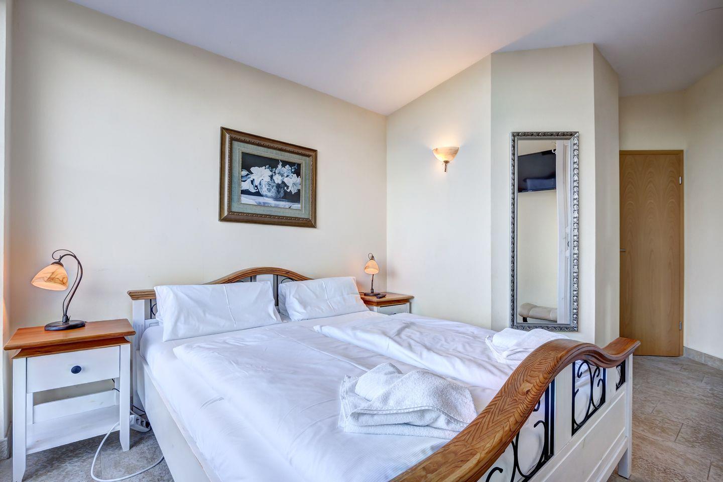 Im 3. Obergeschoss und Dachgeschoss der Anlage gelegen, bietet die Wohnung GP19 eine sehr großzügige Raumaufteilung und einen traumhaften Blick auf die Ostsee. Der Bodenbelag aus hochwertigem Naturstein sorgt für eine edle Atmosphäre. Vom Wohnzimmer führt eine Wendeltreppe in die zweite Wohnebene, die ein großes Kinderzimmer, ein Elternschlafzimmer sowie ein weiteres Badezimmer umfasst. Dort finden Sie zudem einen separaten Ausgang ins Treppenhaus. Durch das überdimensionale Panoramafenster im Schlafzimmer genießen Sie einen unvergleichlichen Ausblick auf die Ostsee. Die Wohnung bietet ausreichend Platz für bis zu 4 Personen und stellt ein wahres 5-Sterne-Apartment dar.