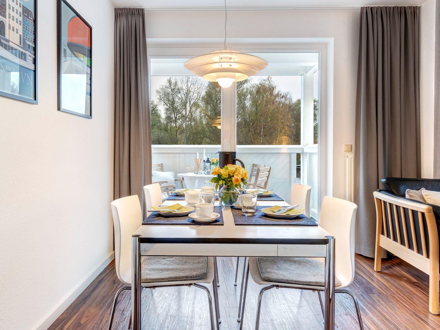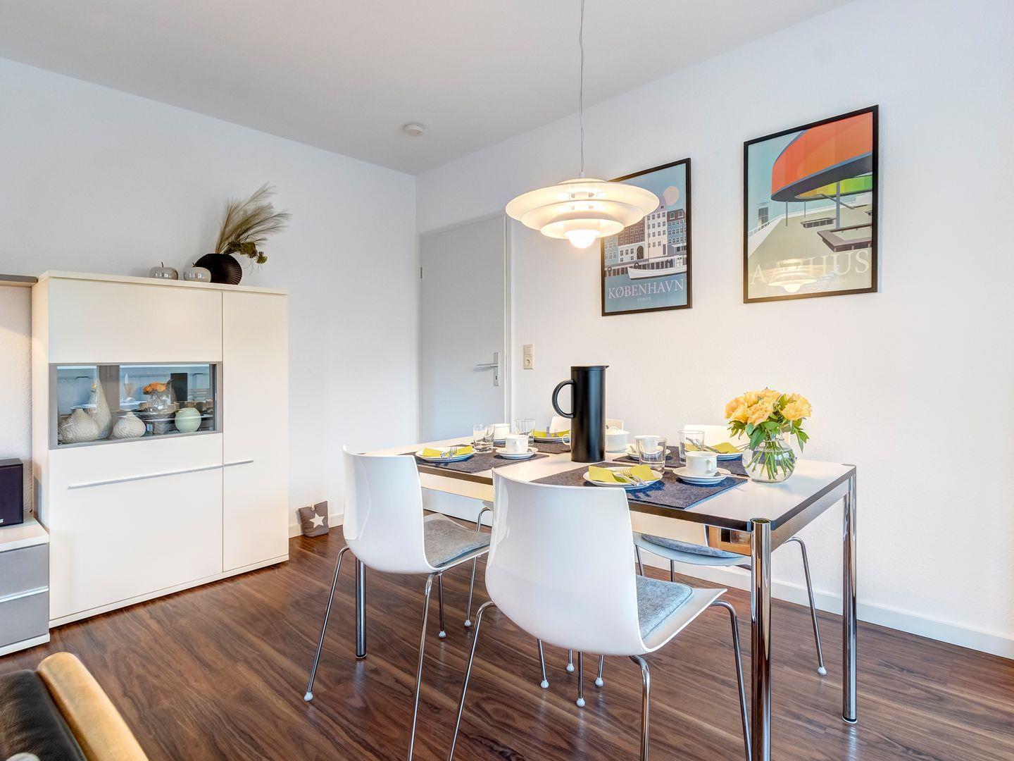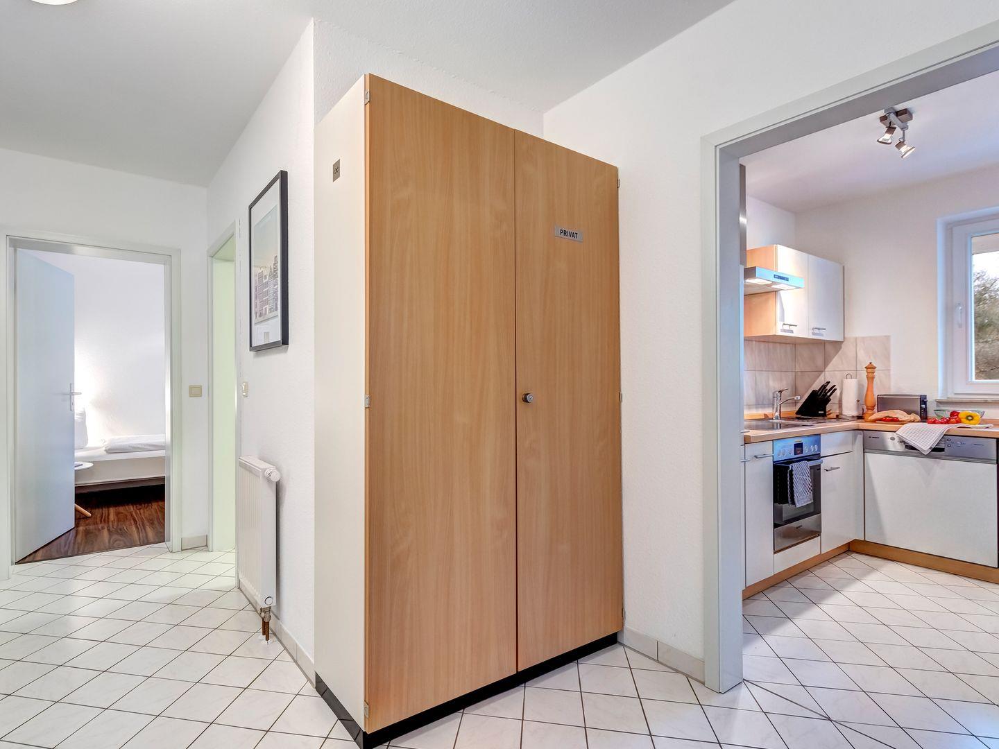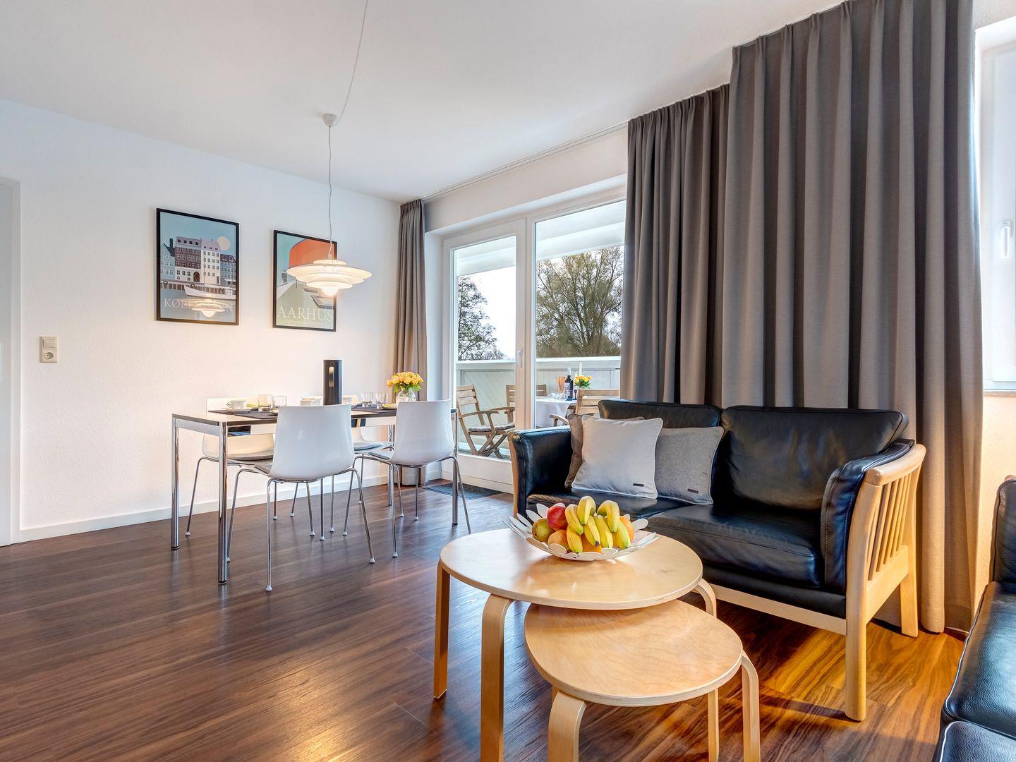 Das 75 m² große Nichtraucherappartement (4-DTV-Sterne) bietet ein Wohnzimmer mit Balkon und moderne Unterhaltungstechnik (Flachbild-TV, Radio/CD-Player). Die separate Küche ist ausgestattet mit Geschirrspüler, Kochfeld, Backofen, Mikrowelle und Kühlschrank. Zwei Schlafzimmer (Doppelbett und Einzelbetten) sorgen für Erholung. Das Badezimmer hat eine Dusche. Ein Parkplatz und ein abschließbarer Fahrradraum stehen zur Verfügung. Genießen Sie Ihren Aufenthalt in diesem gemütlichen Appartement!