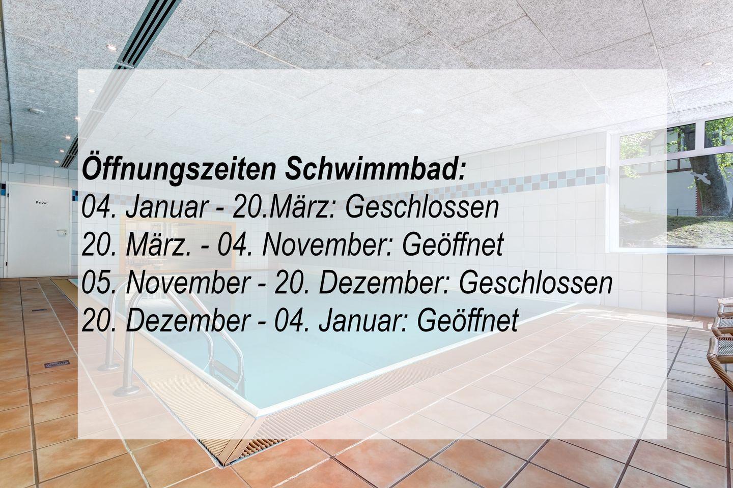 bitte beachten Sie die folgenden Öffnungs- und Schließzeiten unseres Schwimmbadbereichs: