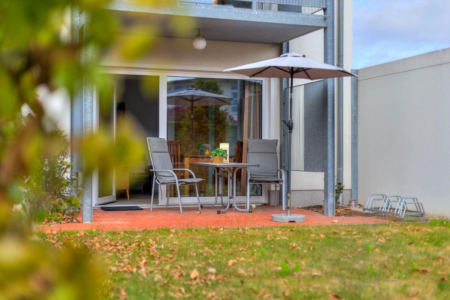 Gemütliche Vier-Sterne-Ferienwohnung Am Sonnengarten1 in Heringsdorf mit Terrasse, Garten und moderner Ausstattung.
