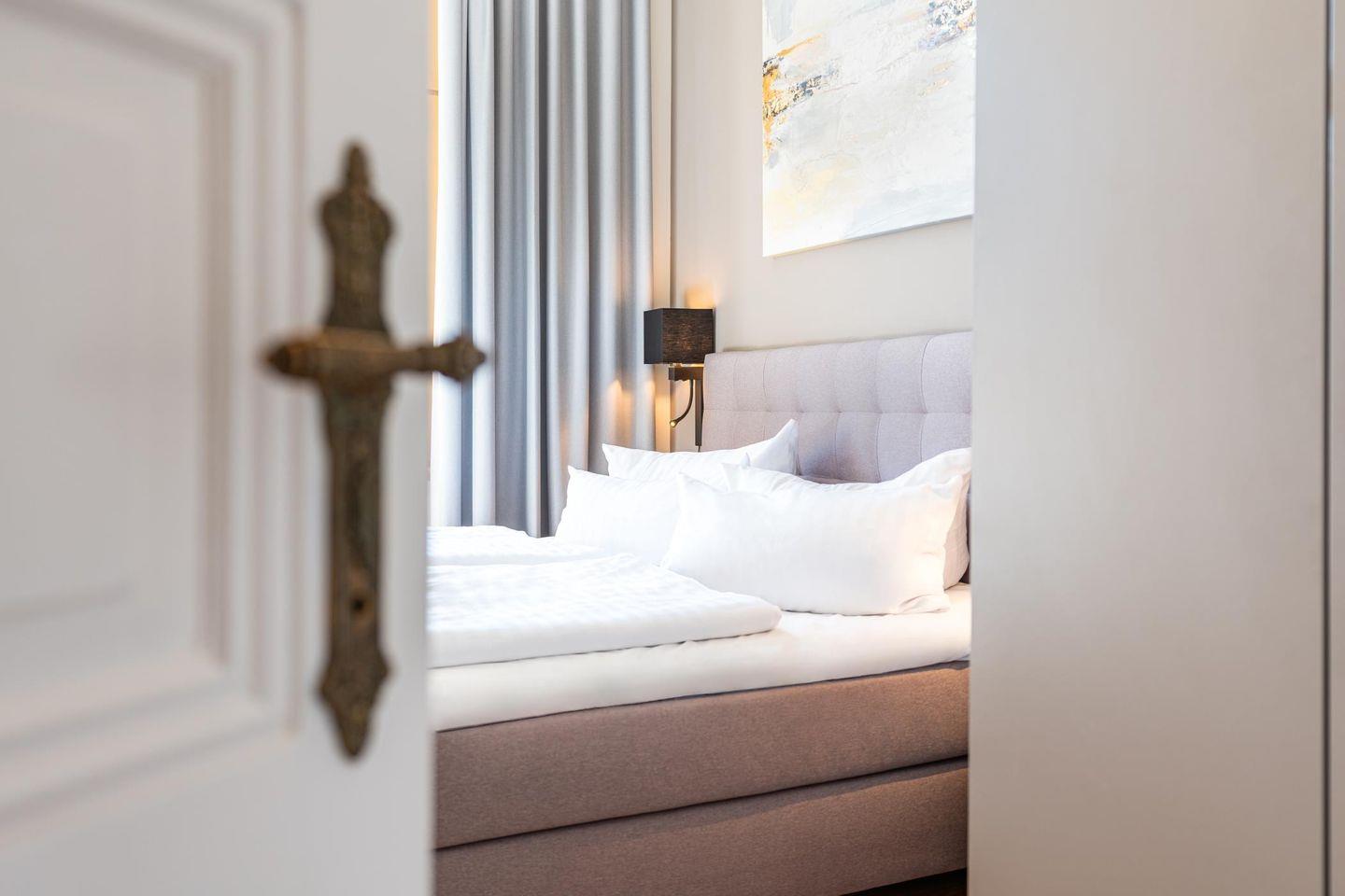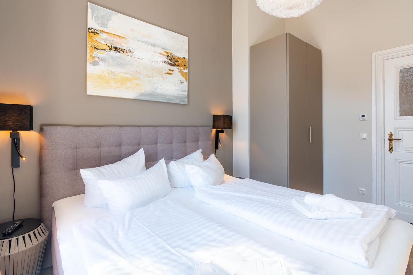Das separate Schlafzimmer verfügt neben einem hochwertigen Box-Springbett über einen Smart-TV.