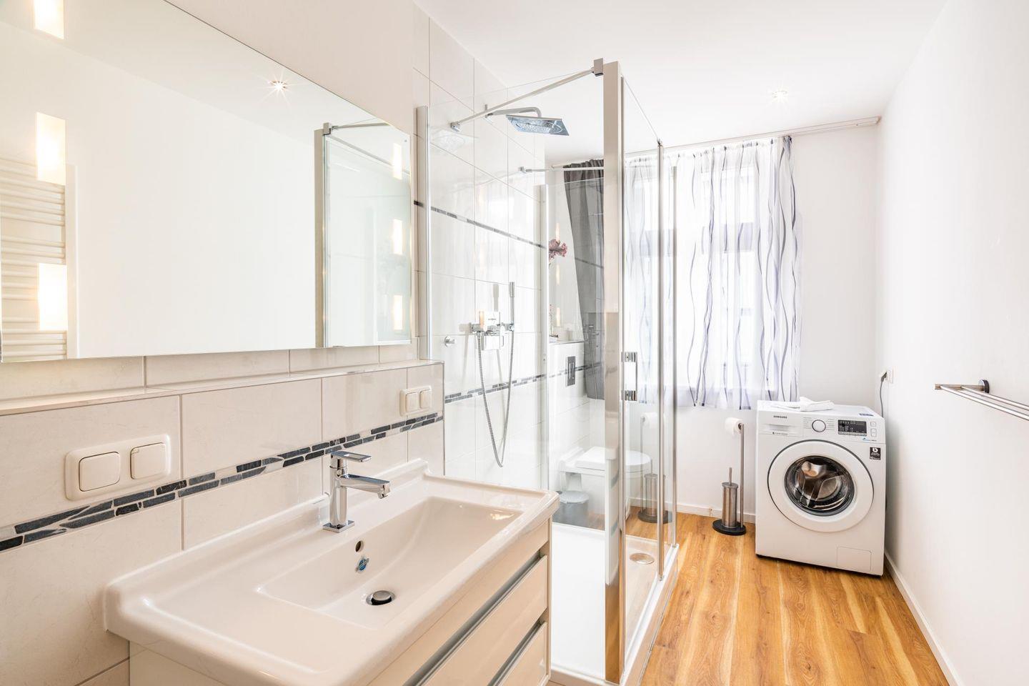 Die Küche ist ein Highlight der Ferienwohnung und bietet eine umfangreiche und hochwertige Ausstattung mit renommierten Marken wie WMF und Tefal. Hier können Sie Ihre Lieblingsgerichte zubereiten und gemeinsame Mahlzeiten genießen. Ein Flaschenwärmer steht ebenfalls zur Verfügung, um sicherzustellen, dass auch die kleinsten Gäste stets bestens versorgt sind.