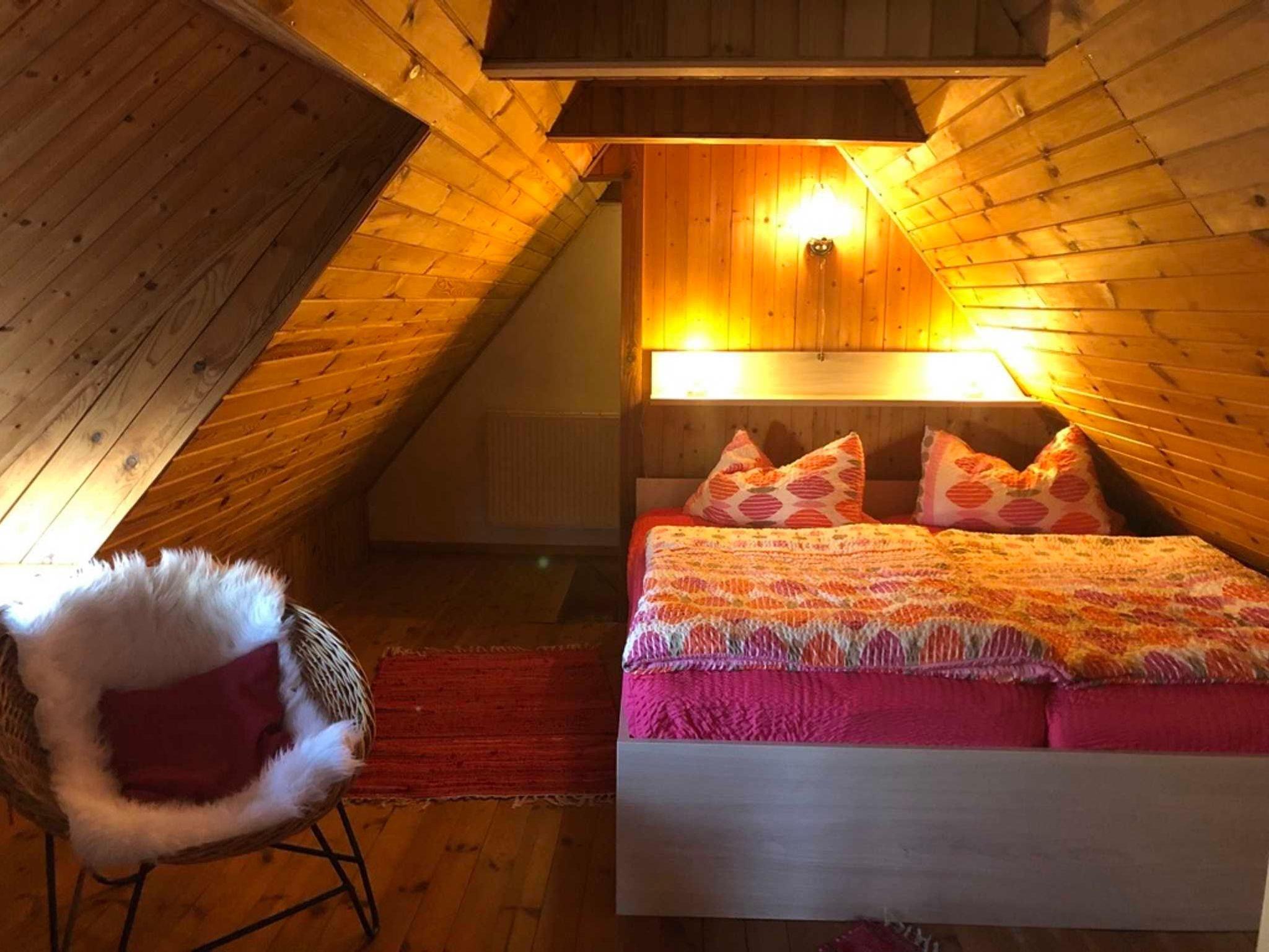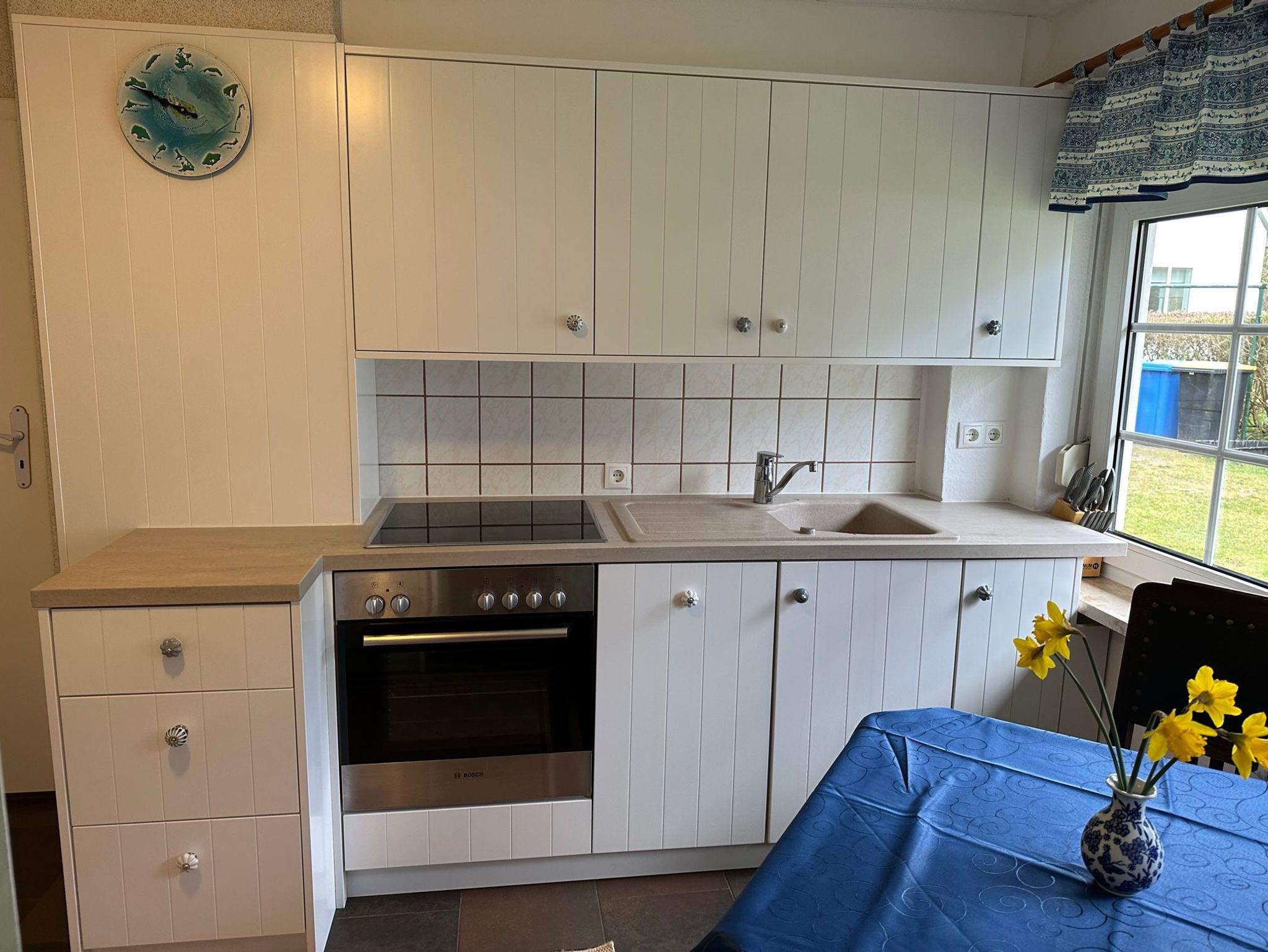 60 m² große Ferienhaus über 2 Etagen mit Wohnzimmer inkl. Sat-TV, vollausgestattete Küchenzeile mit 4 Herdplaten, Backofen, Wasserkocher, Kaffeemaschine, 1 Badezimmer mit Dusche/WC und einem schönen Ausblick in den Garten.