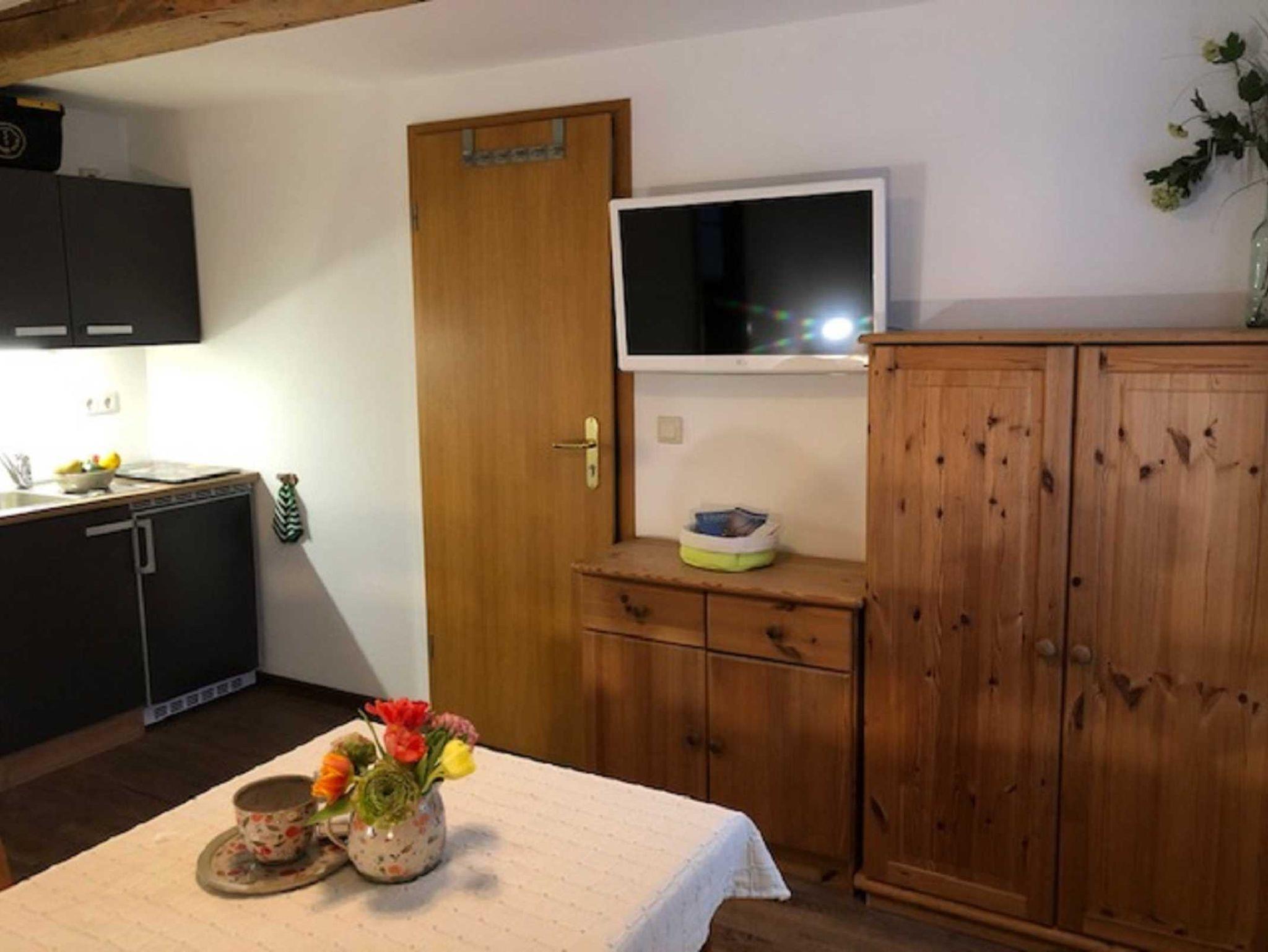 Das 27 qm große Appartement verfügt über eine kleine Küchenzeile mit 2 Kochfeldplatten, Doppelbett, 1 bequemen Sesseln, Sat-TV und einem Badezimmer mit Dusche u. WC. Am Haus stehen Gartenmöbel für Sie bereit.