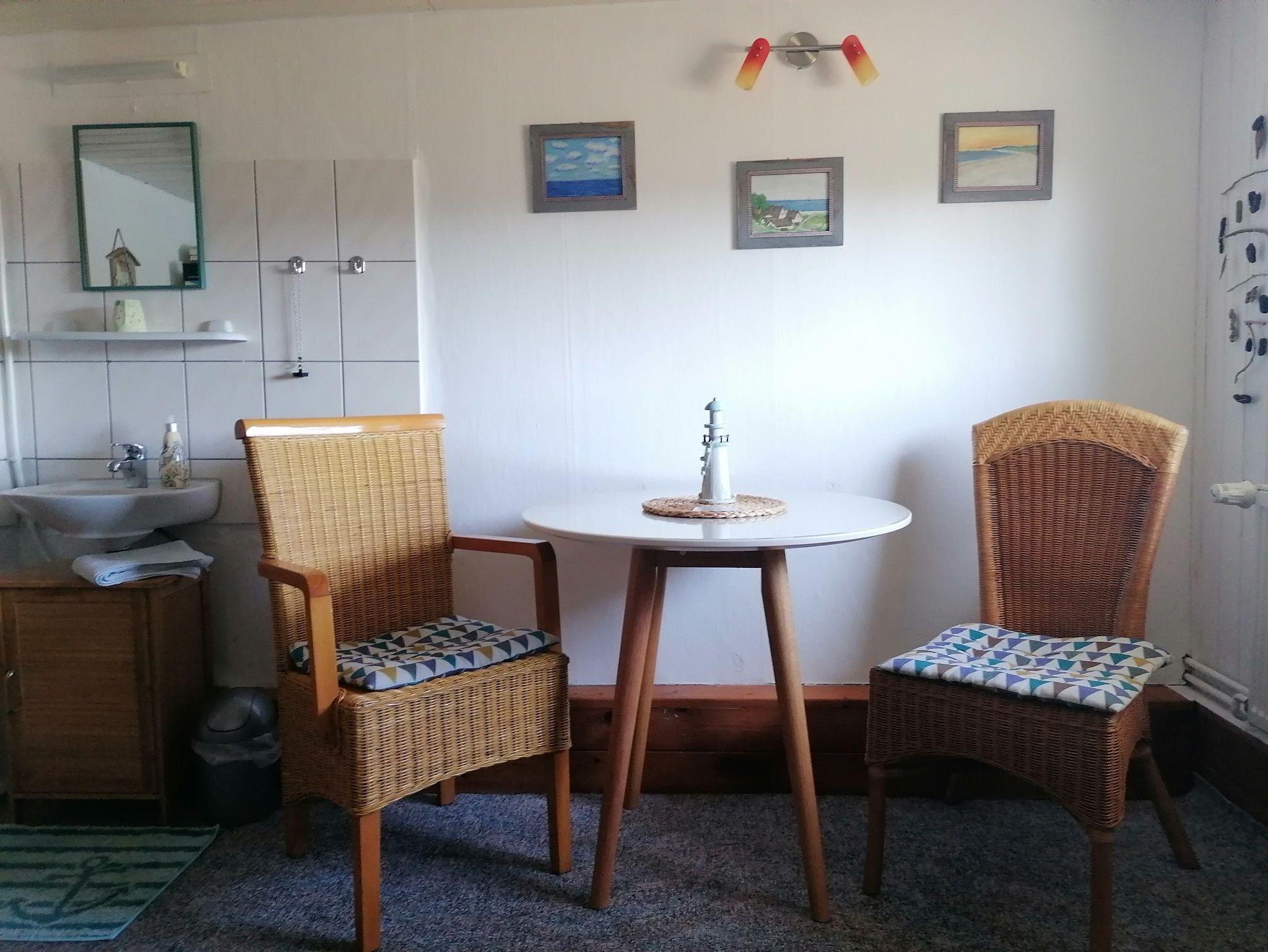 Das gemütliche, reetgedeckte Haus bietet im Obergeschoss ein Einzelzimmer, ein Doppelzimmer sowie eine Ferienwohnung.
