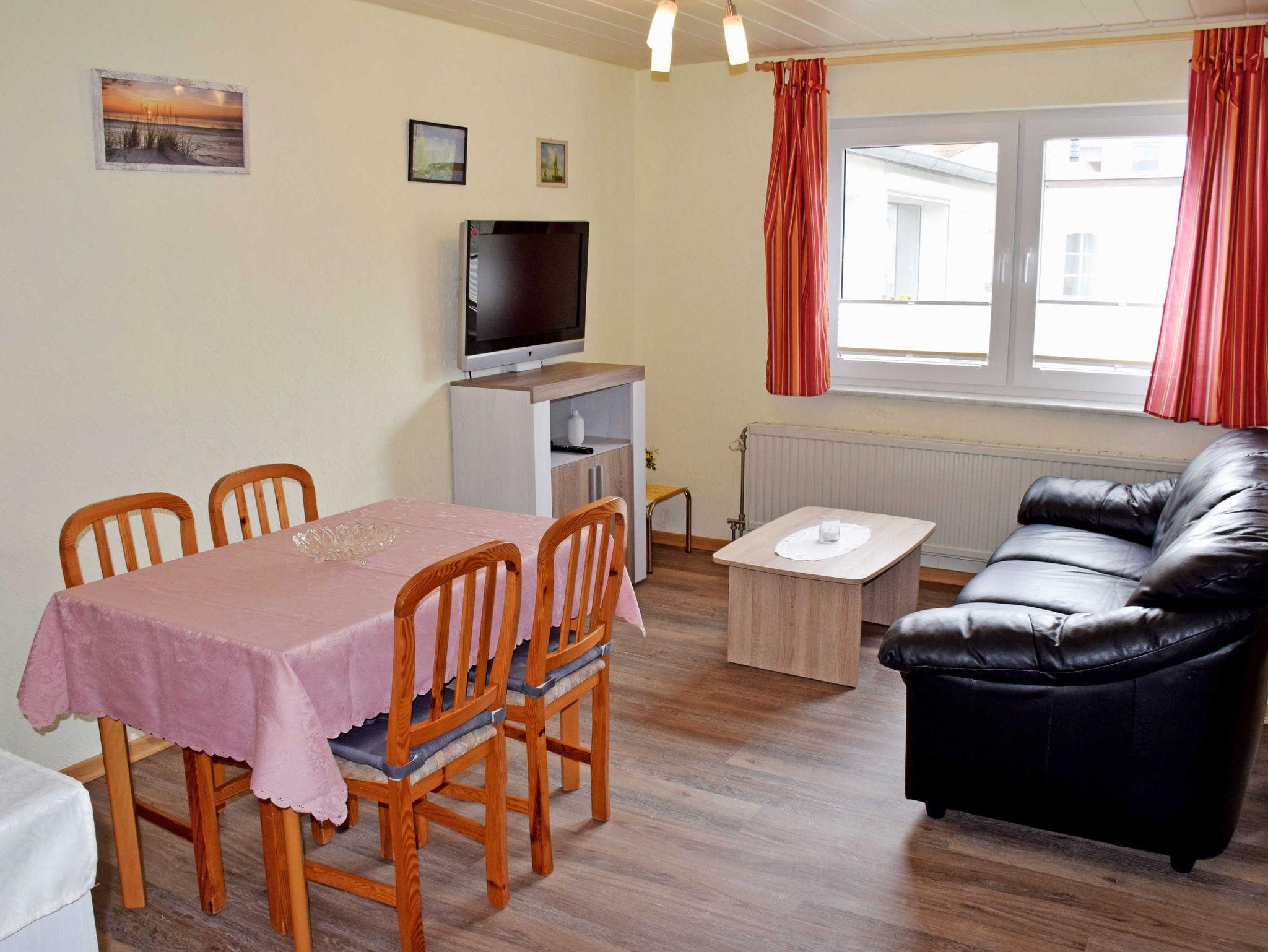 Unser modern und liebevoll eingerichtetes Ferienhaus ist ca. 52 qm groß, bietet Platz für maximal 4 Gäste. Im Wohnraum steht eine bequeme Sitzcouch mit Tisch, ein Schrank , Esstisch mit Stühlen und ein Flachbild-TV.