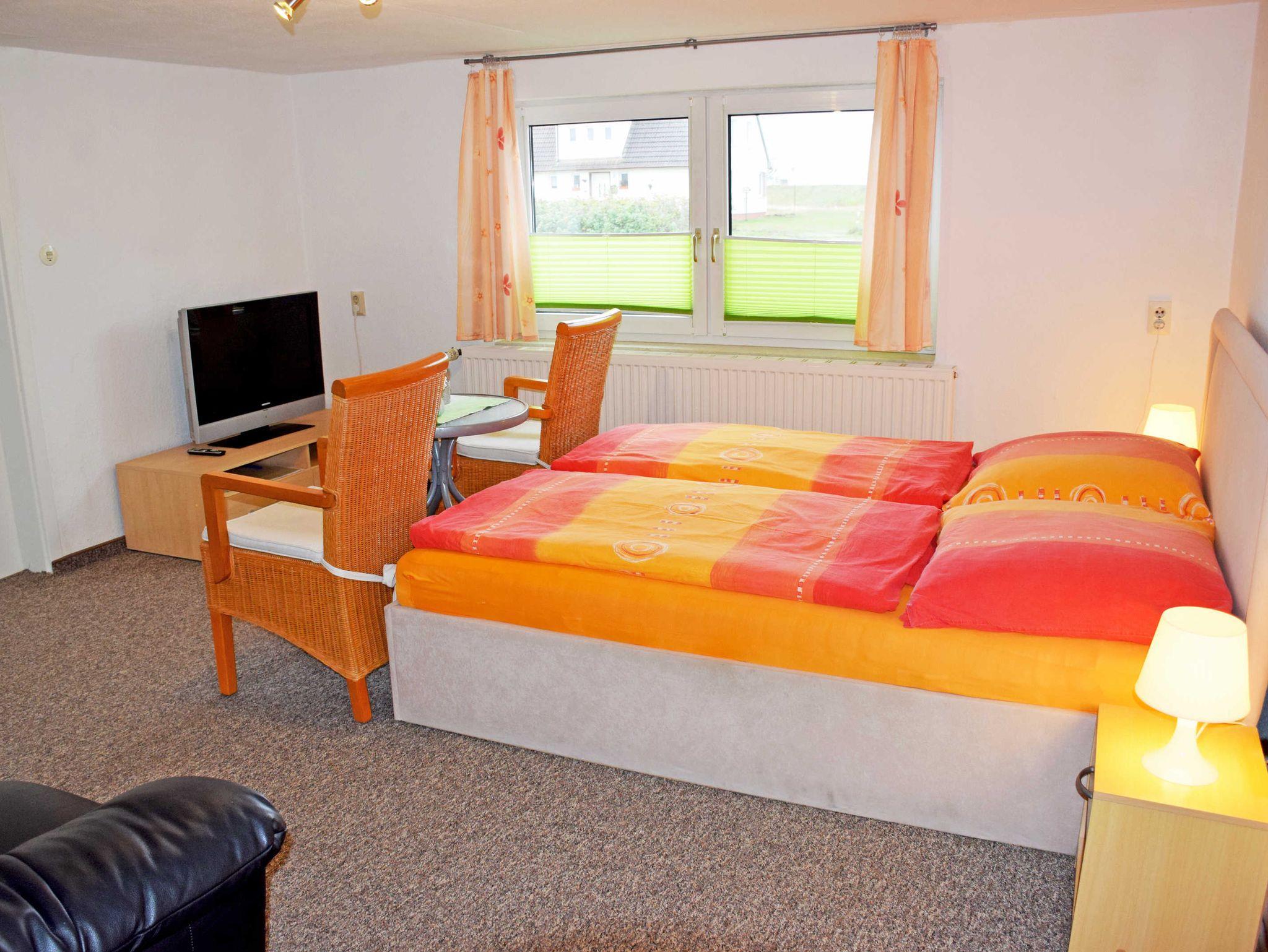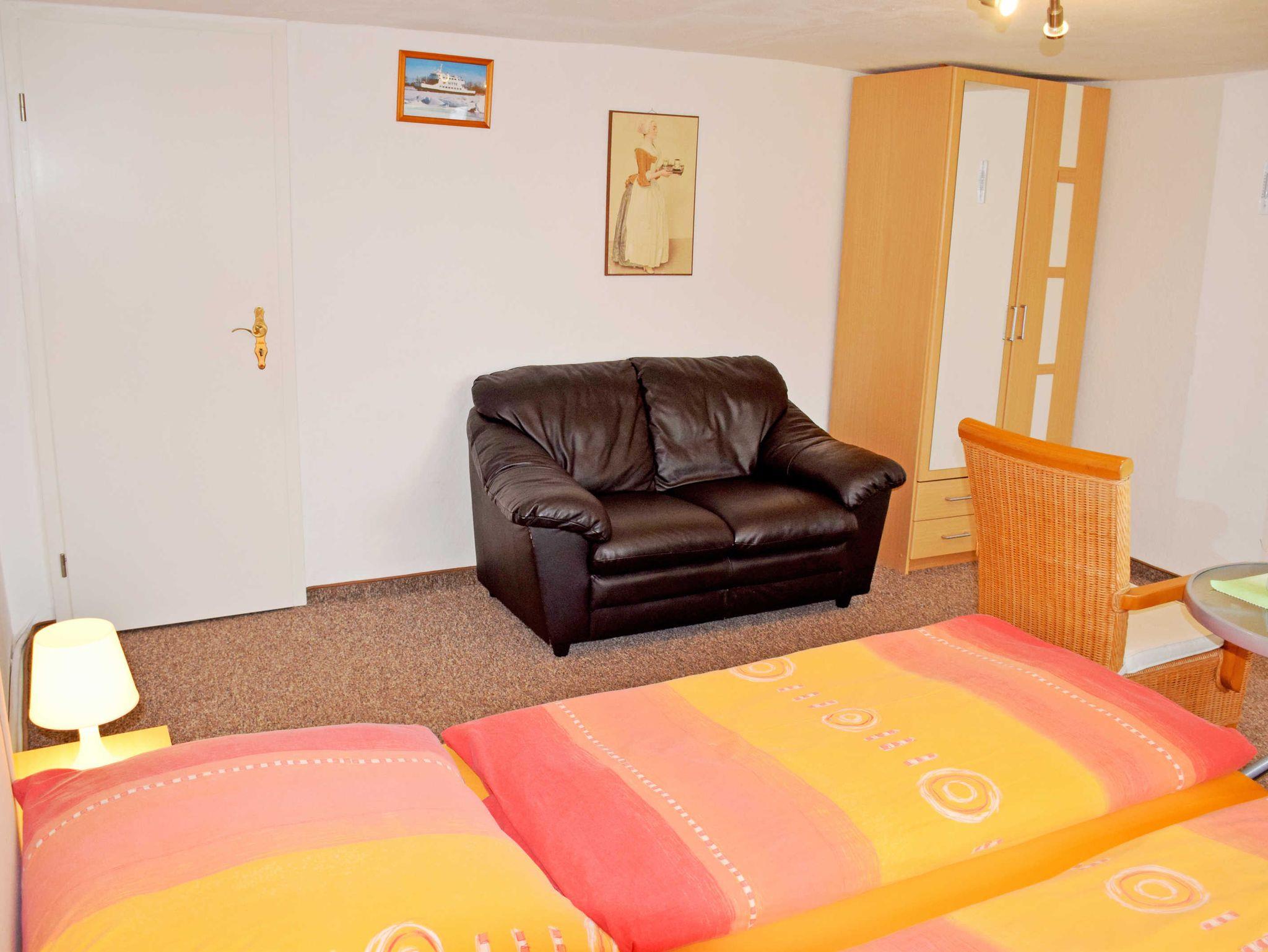 Unsere modern und liebevoll eingerichtete Ferienwohnung west ist ca. 28qm groß, bietet Platz für maximal 2 Gäste. Im kombinierten Wohn-/ Schlafraum stehen ein bequemes Doppelbett mit Nachttischen und Leselampen, zwei Sessel mit Tisch, eine kleine Sitzcouch, ein Schrank sowie ein moderner Flachbild-TV.