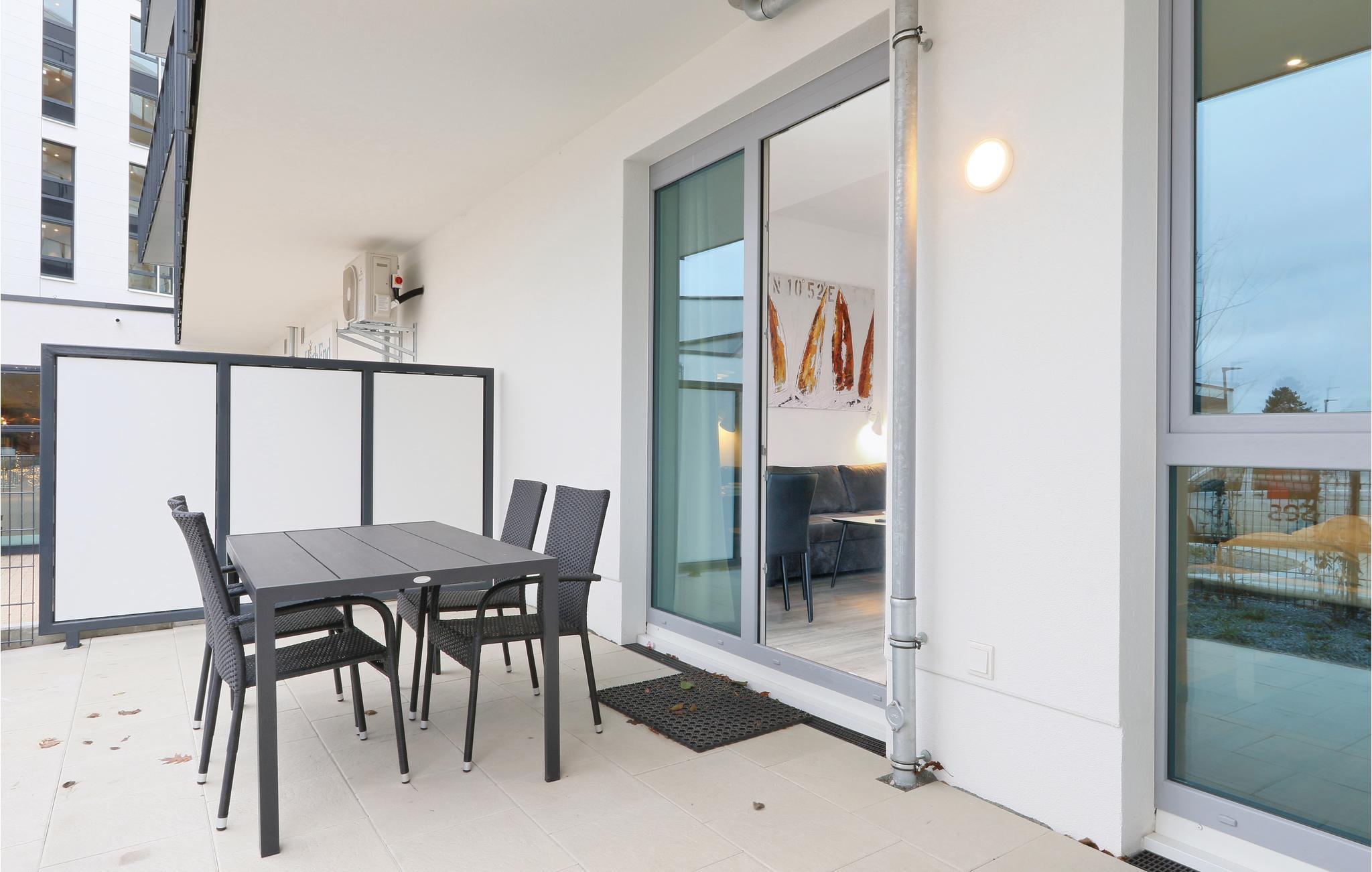 Die moderne Küchenzeile bietet ausreichend Platz zum Kochen und ist mit hochwertigen Markengeräten ausgestattet. Hier finden Kaffeeliebhaber eine Nespresso-Maschine (Kapseln bitte selbst mitbringen), sowie Thermoskanne und Handfilter zum Selbstbrühen, falls Sie doch den klassischen Filterkaffee bevorzugen. Auf der Terrasse können Sie die frische Ostseeluft und das Rauschen der Wellen genießen oder gemeinsame Mahlzeiten mit der Familie einnehmen.