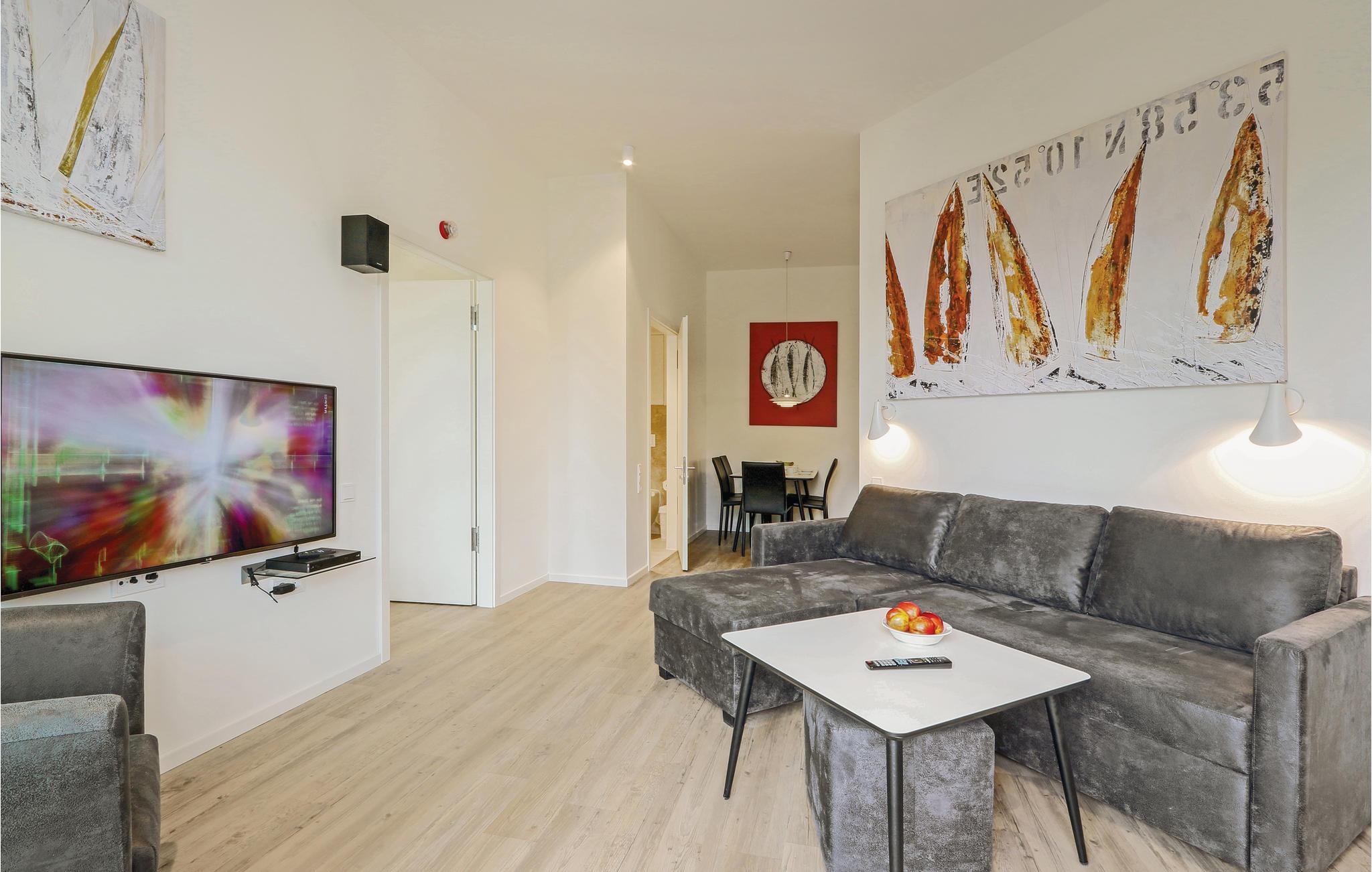 Die Wohnung verfügt über zwei separate Schlafzimmer mit jeweils einem gemütlichen Doppelbett. Im Wohnbereich können Sie es sich vor dem wohligen Licht des Bio-Ethanol-Kamins gemütlich machen. Das moderne Entertainmentsystem mit Blu-Ray-Player, Musikanlage mit MP3-Anschluss sowie 3 Flachbildfernsehern sorgt für ausreichend Unterhaltung. Im Wohnbereich befindet sich außerdem das Schlafsofa, welches für kurze Aufenthalte einen weiteren Schlafplatz bietet. Alle Zimmer sind im skandinavischen Stil eingerichtet und durch die bodentiefen Fenster hell und lichtdurchflutet.