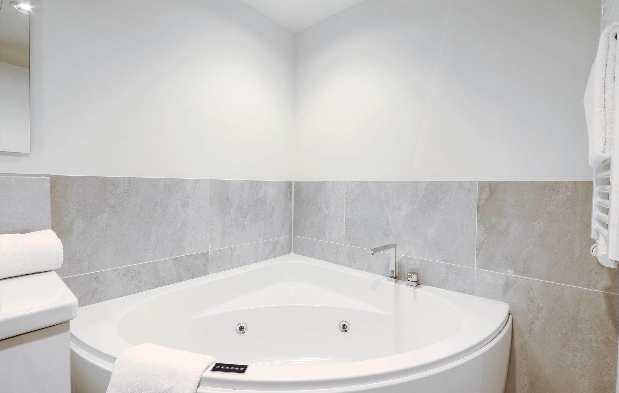 In der Wohnung befinden sich zwei Badezimmer, die sich als Ihr persönlicher Wellness-Bereich präsentieren. Hier können Sie sich nach einem langen Spaziergang an der Ostsee in der Sauna aufwärmen. Außerdem gibt es ein Dampfbad mit Regendusche sowie ein Whirlpool für zwei Personen. Hier lässt es sich herrlich entspannen.