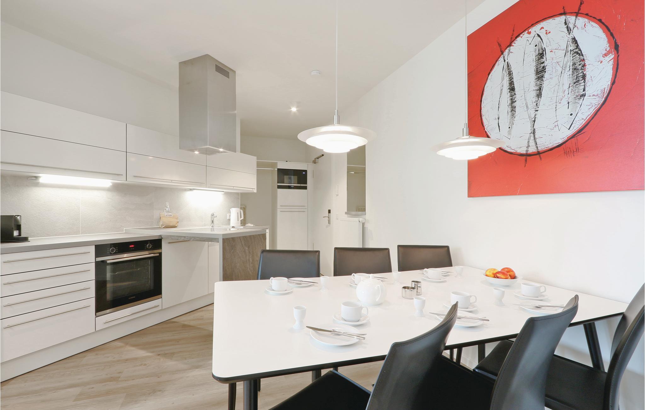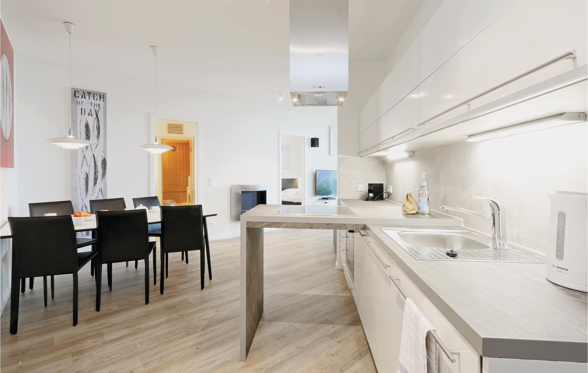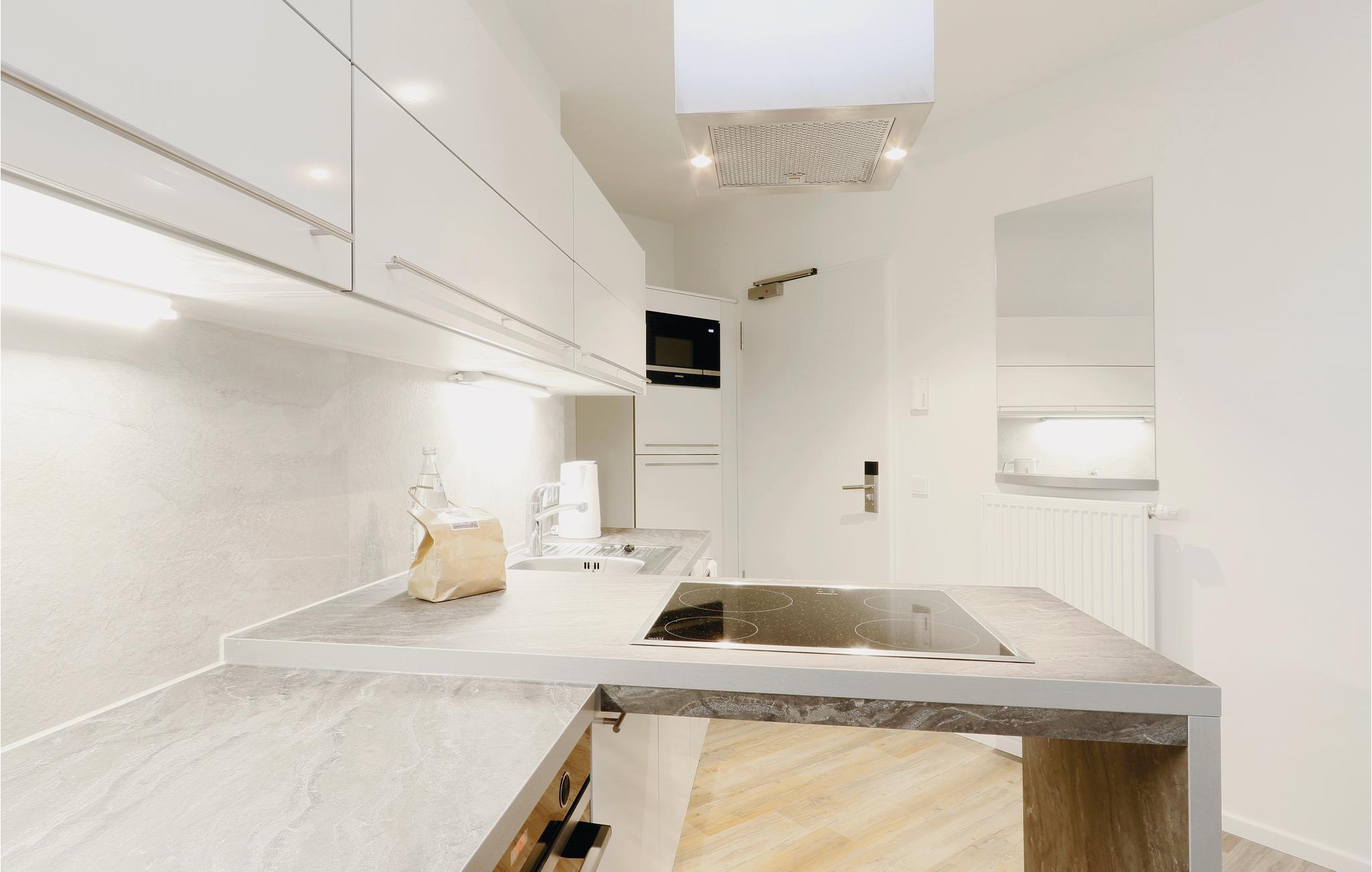 Die moderne Küchenzeile bietet ausreichend Platz zum Kochen und ist mit hochwertigen Markengeräten ausgestattet. Hier finden Kaffeeliebhaber eine Nespresso-Maschine (Kapseln bitte selbst mitbringen), sowie Thermoskanne und Handfilter zum Selbstbrühen, falls Sie doch den klassischen Filterkaffee bevorzugen.