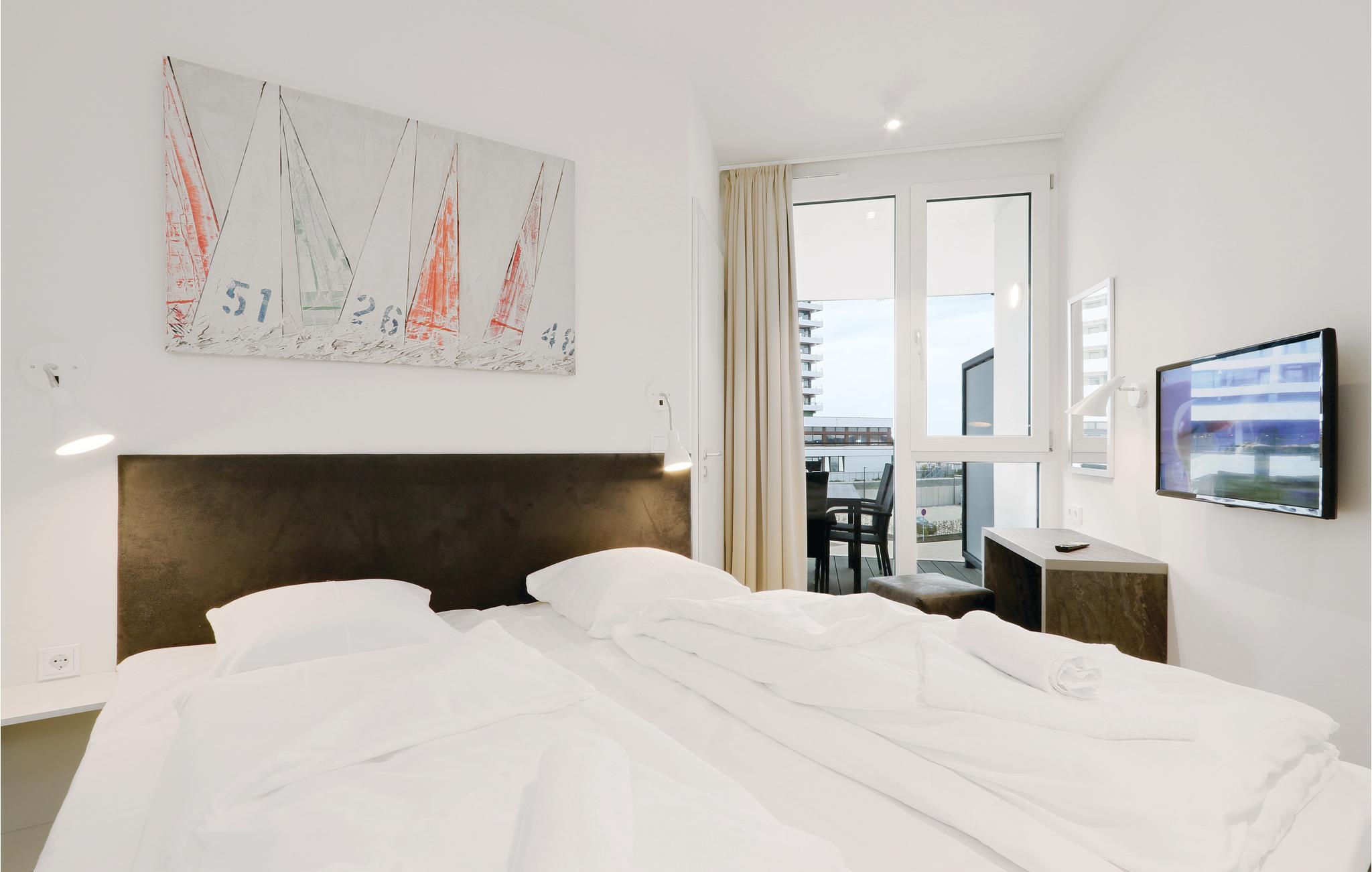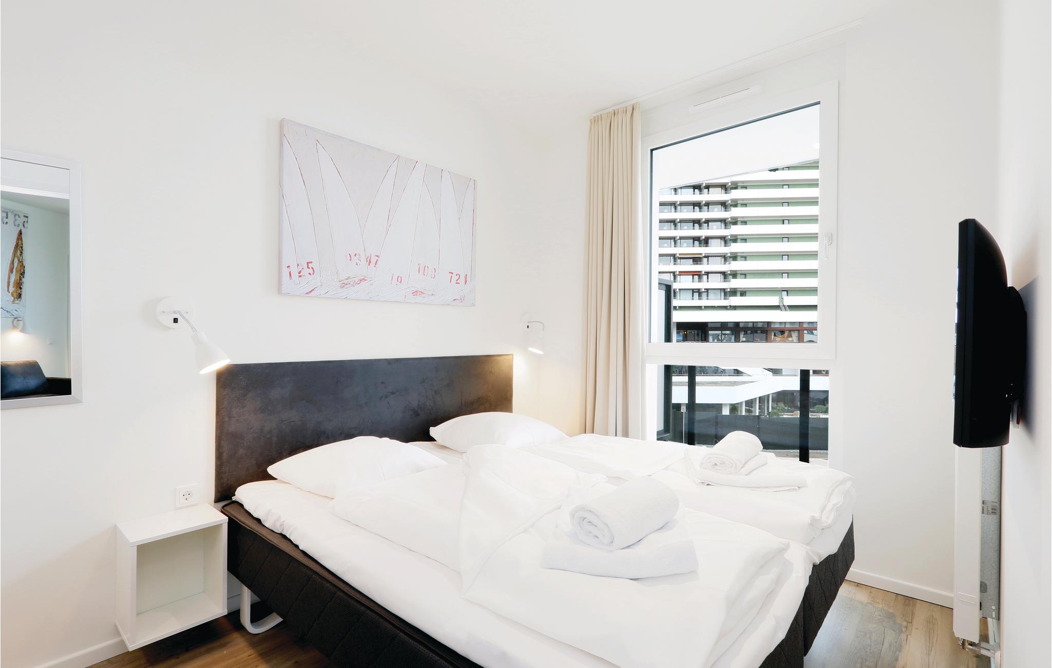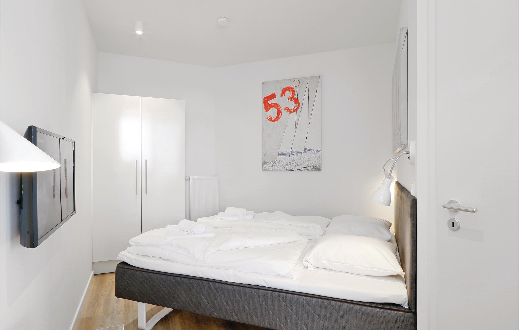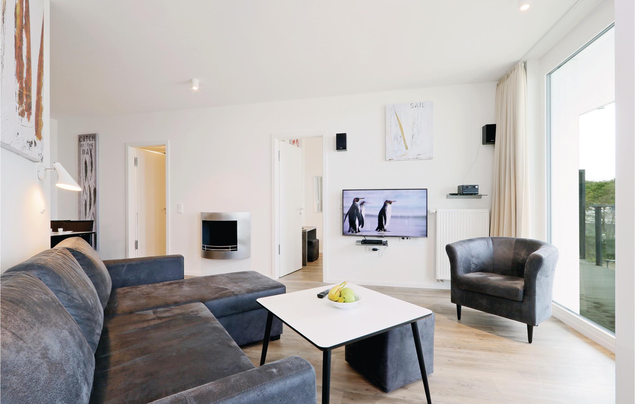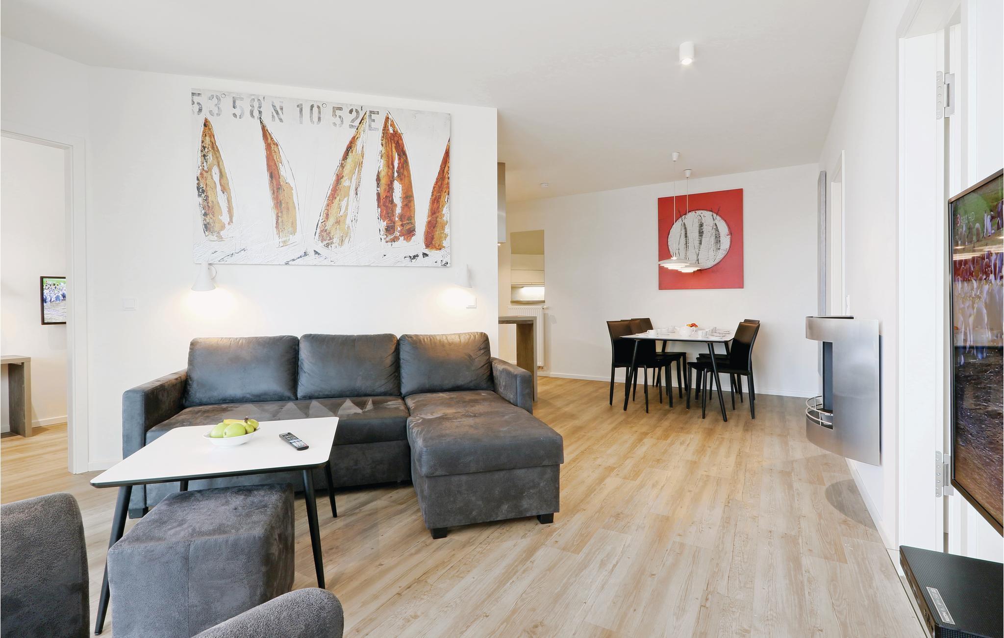 Ihre Ferienwohnung befindet sich im 2. Obergeschoss der Anlage. Sie verfügt über zwei separate Schlafzimmer mit jeweils einem gemütlichen Doppelbett. Im Wohnbereich können Sie es sich vor dem wohligen Licht des Bio-Ethanol-Kamins gemütlich machen. Im Wohnbereich befindet sich außerdem das Schlafsofa, welches zwei weitere Schlafplätze bietet. Ein Kinderbett lässt sich ausschließlich im Wohnzimmer aufstellen, da im Schlafzimmer nicht ausreichend Platz zur Verfügung steht.