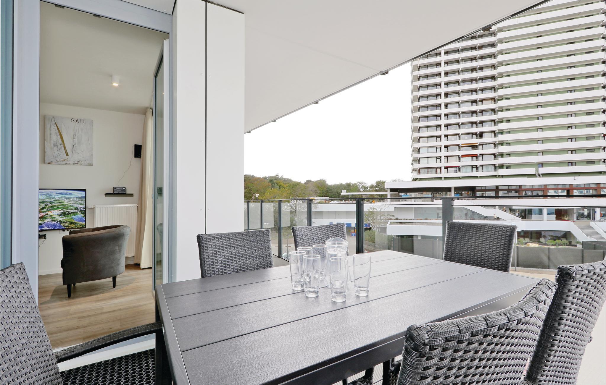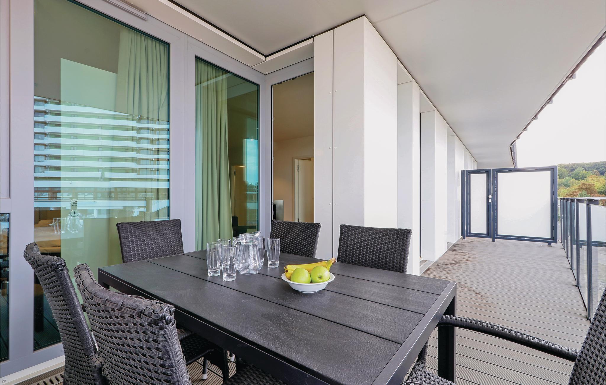 Auf dem Balkon können Sie die frische Ostseeluft und das Rauschen der Wellen genießen oder gemeinsame Mahlzeiten mit der Familie einnehmen. Genießen Sie hier den Blick auf die Promenade bis hin zur Ostsee.