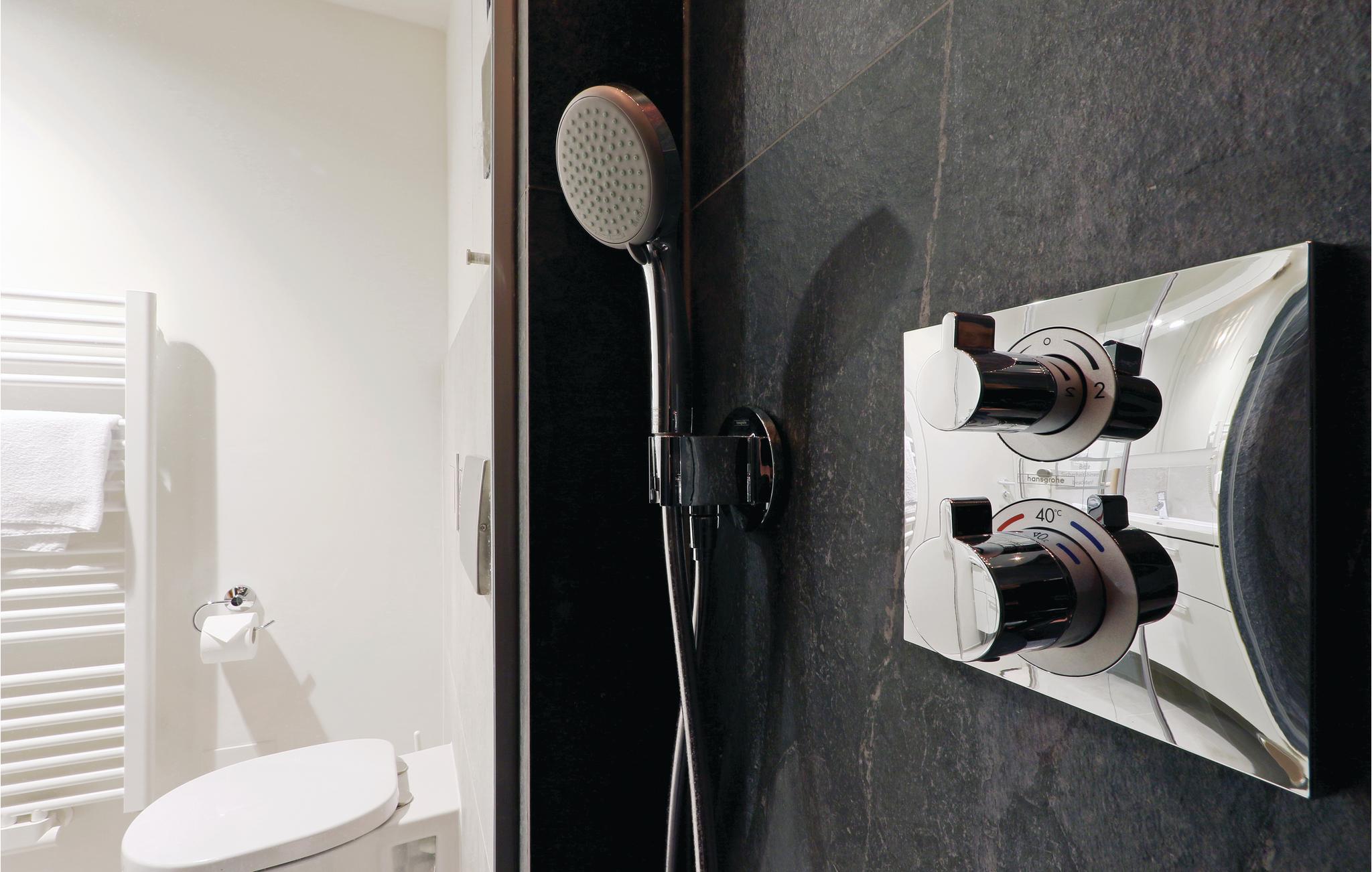- WC mit warmem und kaltem Wasser, Dusche