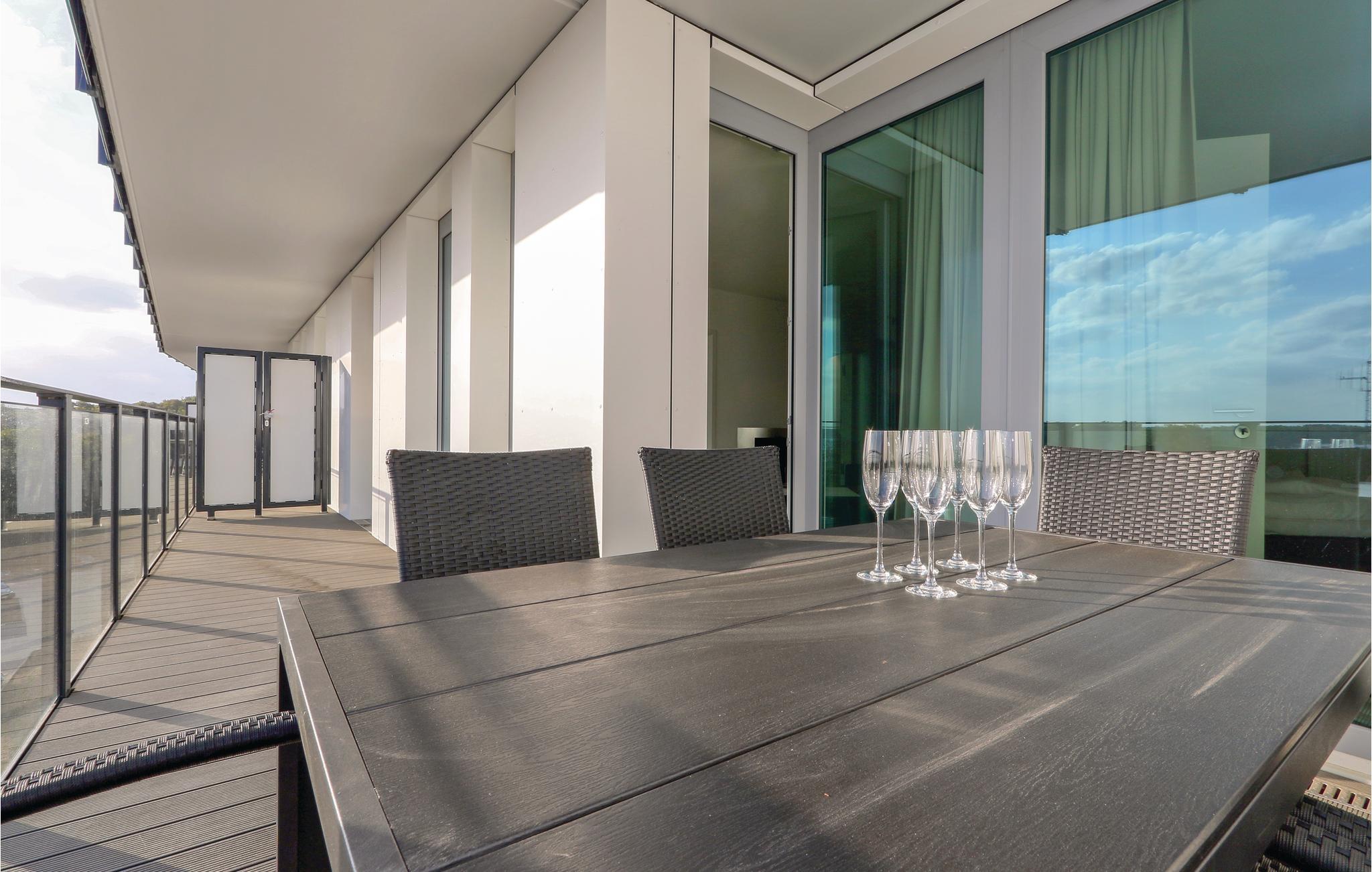 Auf dem Balkon, der nach Süden ausgerichtet ist, können Sie die frische Ostseeluft und das Rauschen der Wellen genießen oder gemeinsame Mahlzeiten mit der Familie einnehmen. Genießen Sie hier den Blick auf die Hafeneinfahrt und den Priwall bis hin zum feinen Priwallstrand. Gegen ein kleines Pfand können Sie sich an der Rezeption ein Fernglas ausleihen, mit dem Sie das Treiben der Umgebung und die Natur beobachten können.