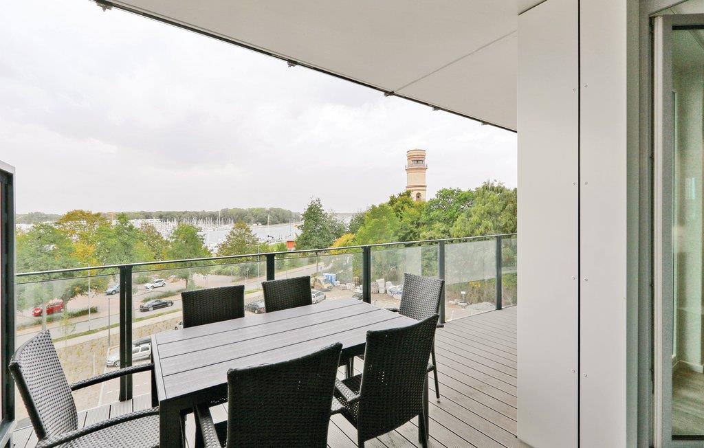 Der nach Süden ausgerichtete Balkon lädt ein, die frische Ostseeluft und die Sonne zu genießen. Von hier aus blicken Sie auf den Priwall und die Hafenausfahrt mit den vorbeziehenden Schiffen. Gartenmöbel stehen hier für gemeinsame Mahlzeiten mit der Familie zur Verfügung. Gegen ein kleines Pfand können Sie sich an der Rezeption ein Fernglas ausleihen, mit dem Sie die das Treiben der Umgebung und die Natur beobachten können.