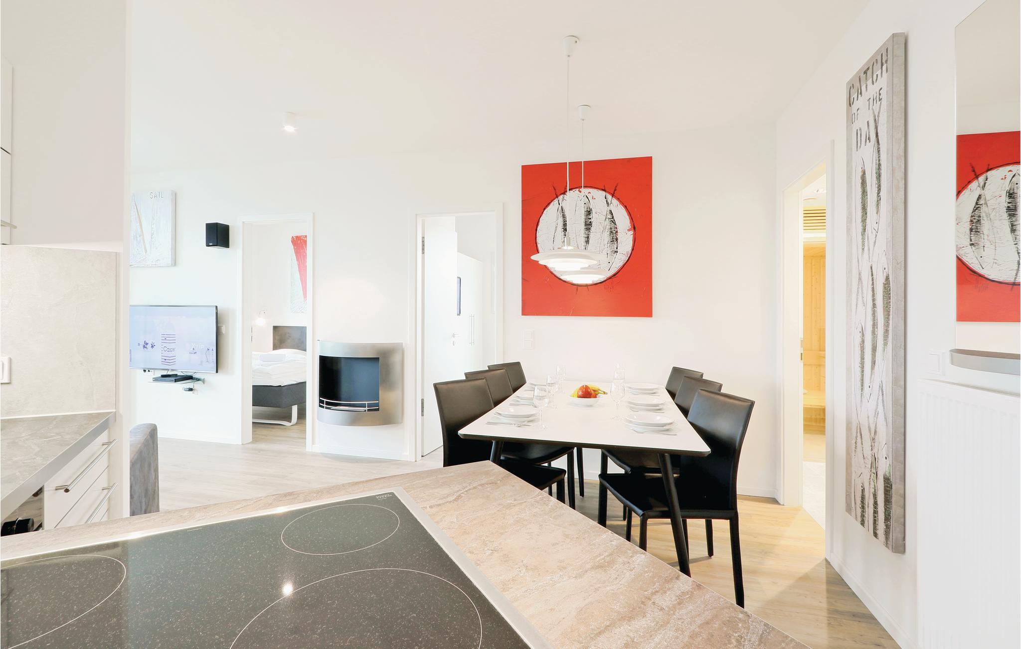 In der Wohnung befinden sich zwei Badezimmer, die sich als Ihr persönlicher Wellness-Bereich präsentieren. Hier können Sie sich nach einem langen Spaziergang an der Ostsee in der Sauna aufwärmen. Außerdem gibt es ein Dampfbad mit Regendusche sowie ein Whirlpool für zwei Personen. Hier lässt es sich herrlich entspannen.