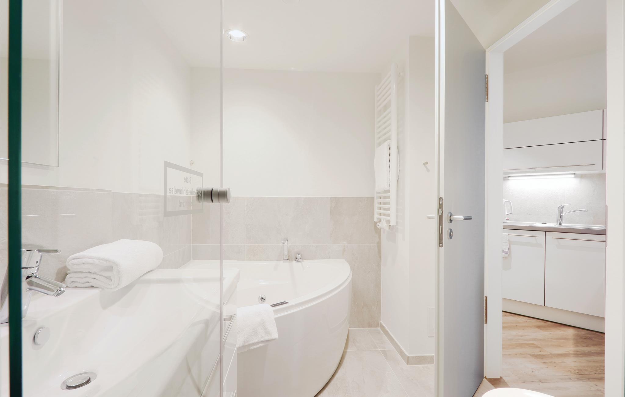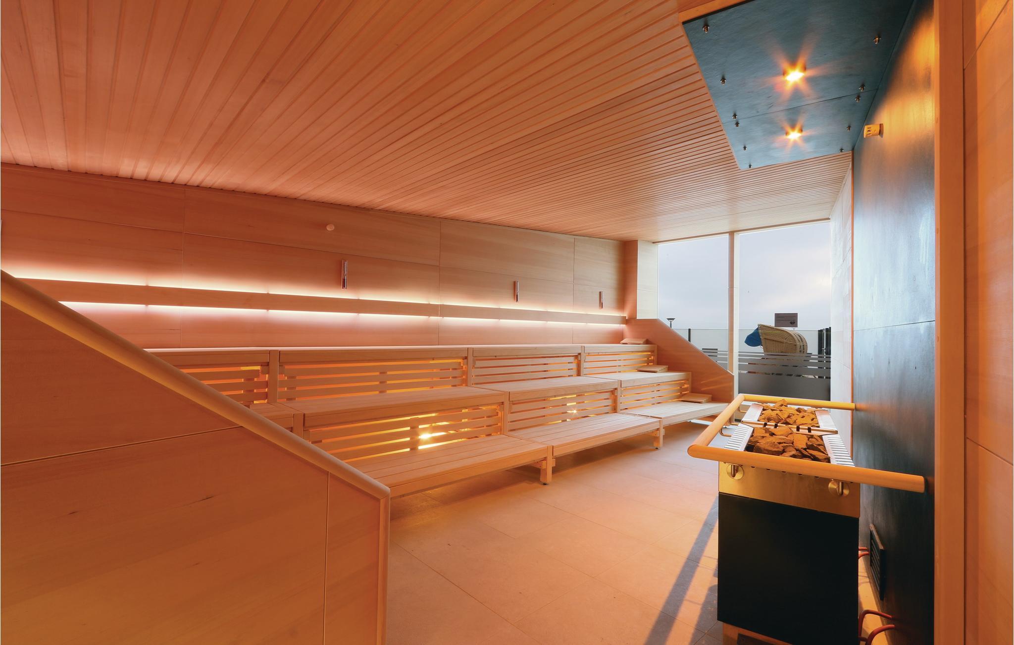 In der Wohnung befinden sich zwei Badezimmer, die sich als Ihr persönlicher Wellness-Bereich präsentieren. Hier können Sie sich nach einem langen Spaziergang an der Ostsee in der Sauna aufwärmen. Außerdem gibt es ein Dampfbad mit Regendusche sowie ein Whirlpool für zwei Personen. Hier lässt es sich herrlich entspannen.