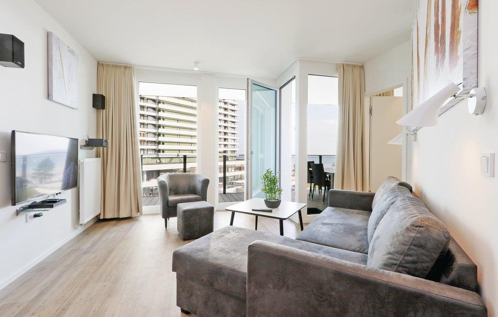Ihre Ferienwohnung befindet sich im 4. Obergeschoss der Anlage, weshalb Sie eine einmalige Aussicht genießen können. Von hier aus können Sie über den Ort, die Promenade und den schönen Sandstrand bis hin zur Ostsee blicken. Alle Zimmer sind im skandinavischen Stil eingerichtet und durch die bodentiefen Fenster hell und lichtdurchflutet. Ein Kinderbett lässt sich ausschließlich im Wohnzimmer aufstellen, da im Schlafzimmer nicht ausreichend Platz zur Verfügung steht.