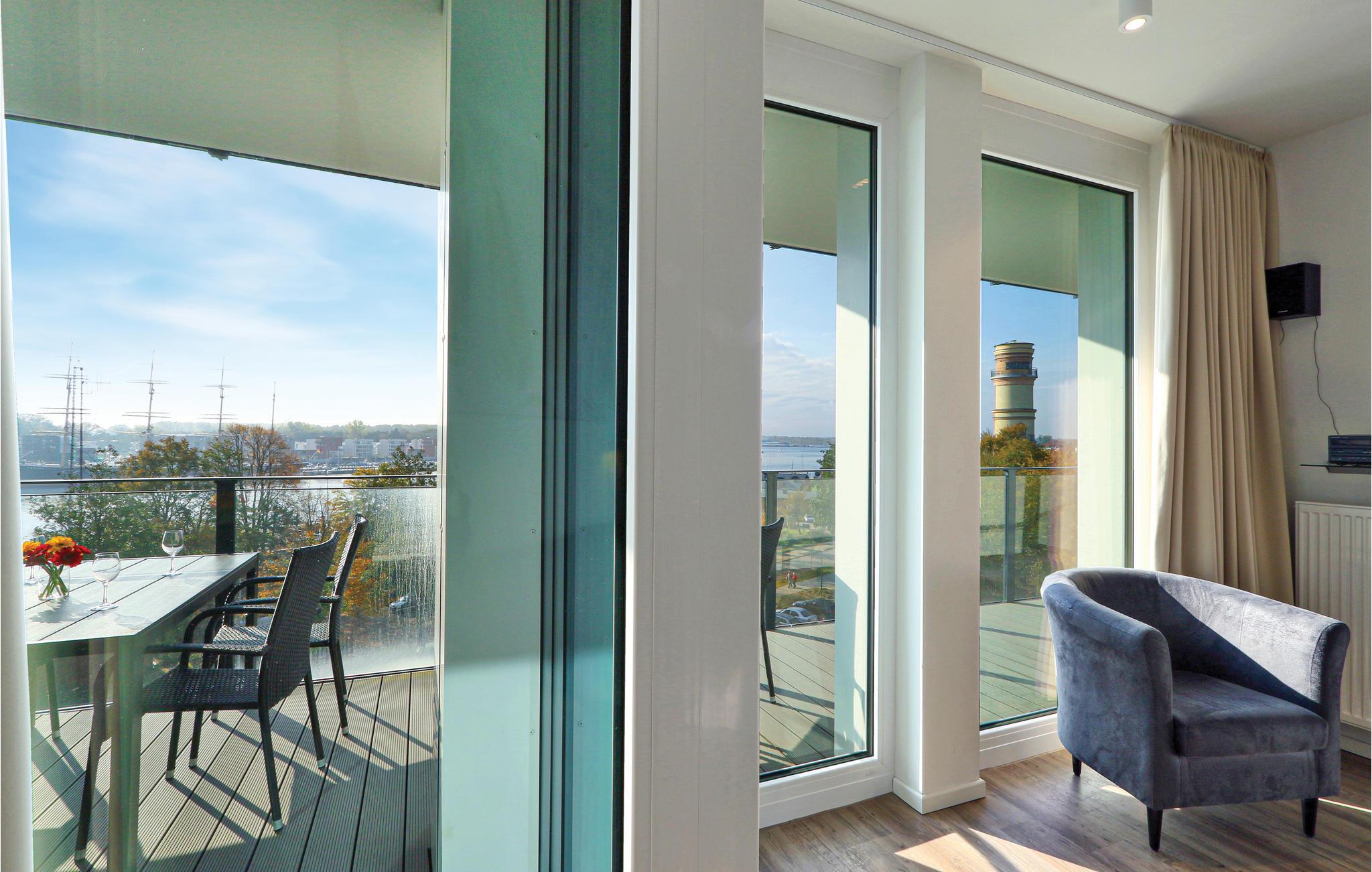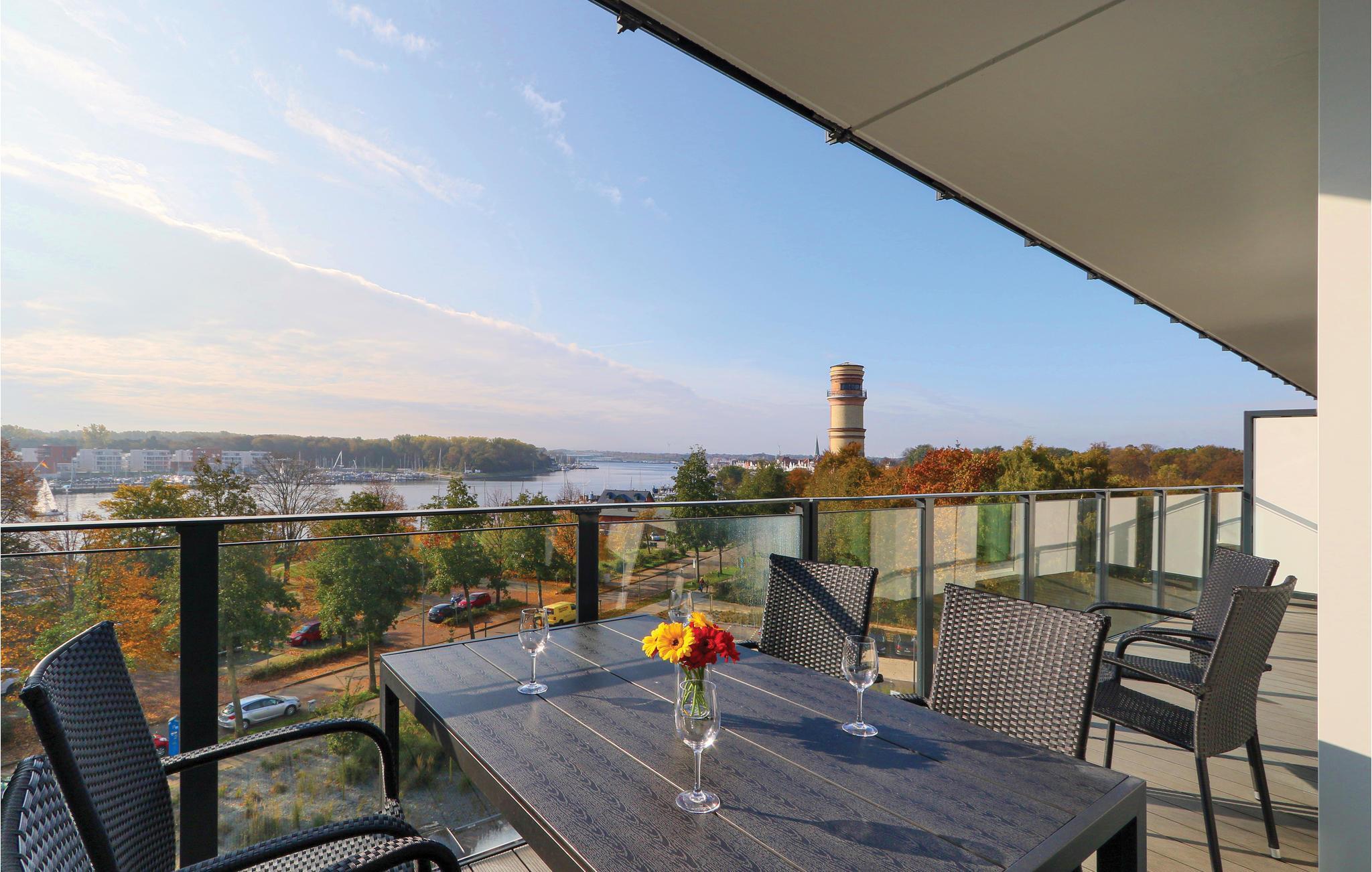 Auf dem Balkon, der nach Süden ausgerichtet ist, können Sie die frische Ostseeluft und das Rauschen der Wellen genießen oder gemeinsame Mahlzeiten mit der Familie einnehmen. Genießen Sie hier den wunderschönen Blick auf die Travemündung sowie den Priwall bis hin zum feinen Sandstrand. Gegen ein kleines Pfand können Sie sich an der Rezeption ein Fernglas ausleihen, mit dem Sie die das Treiben der Umgebung und die Natur beobachten können.