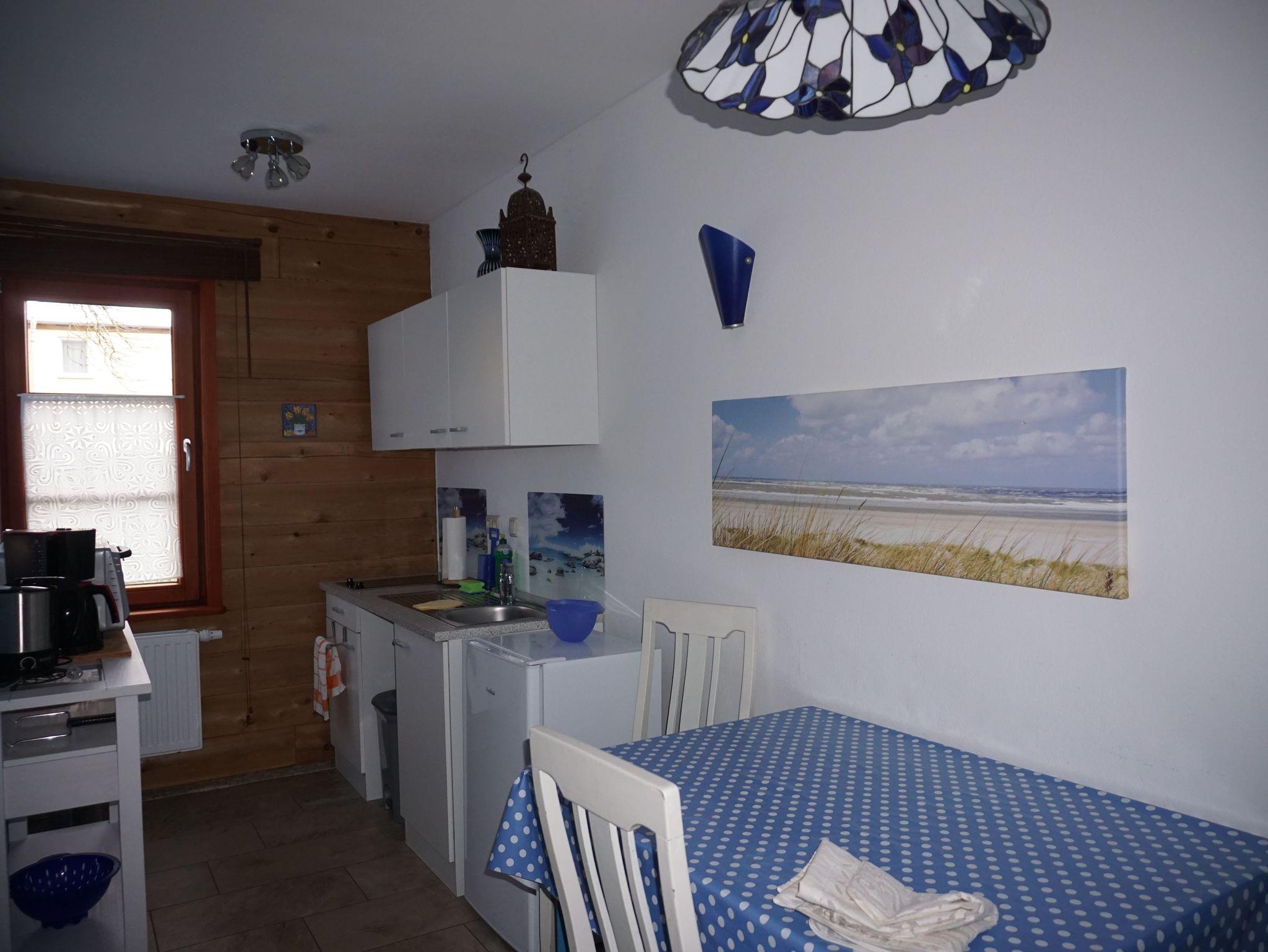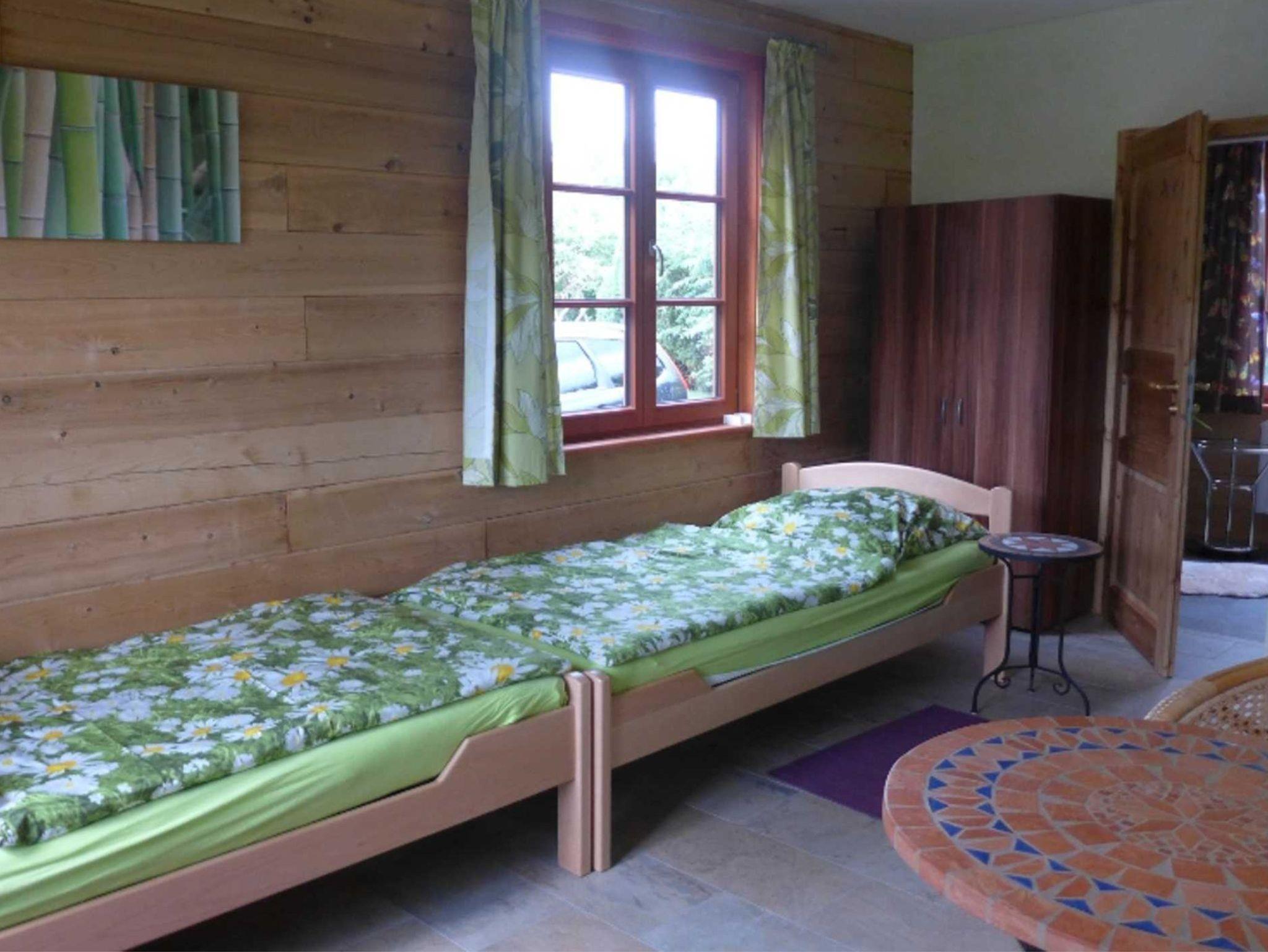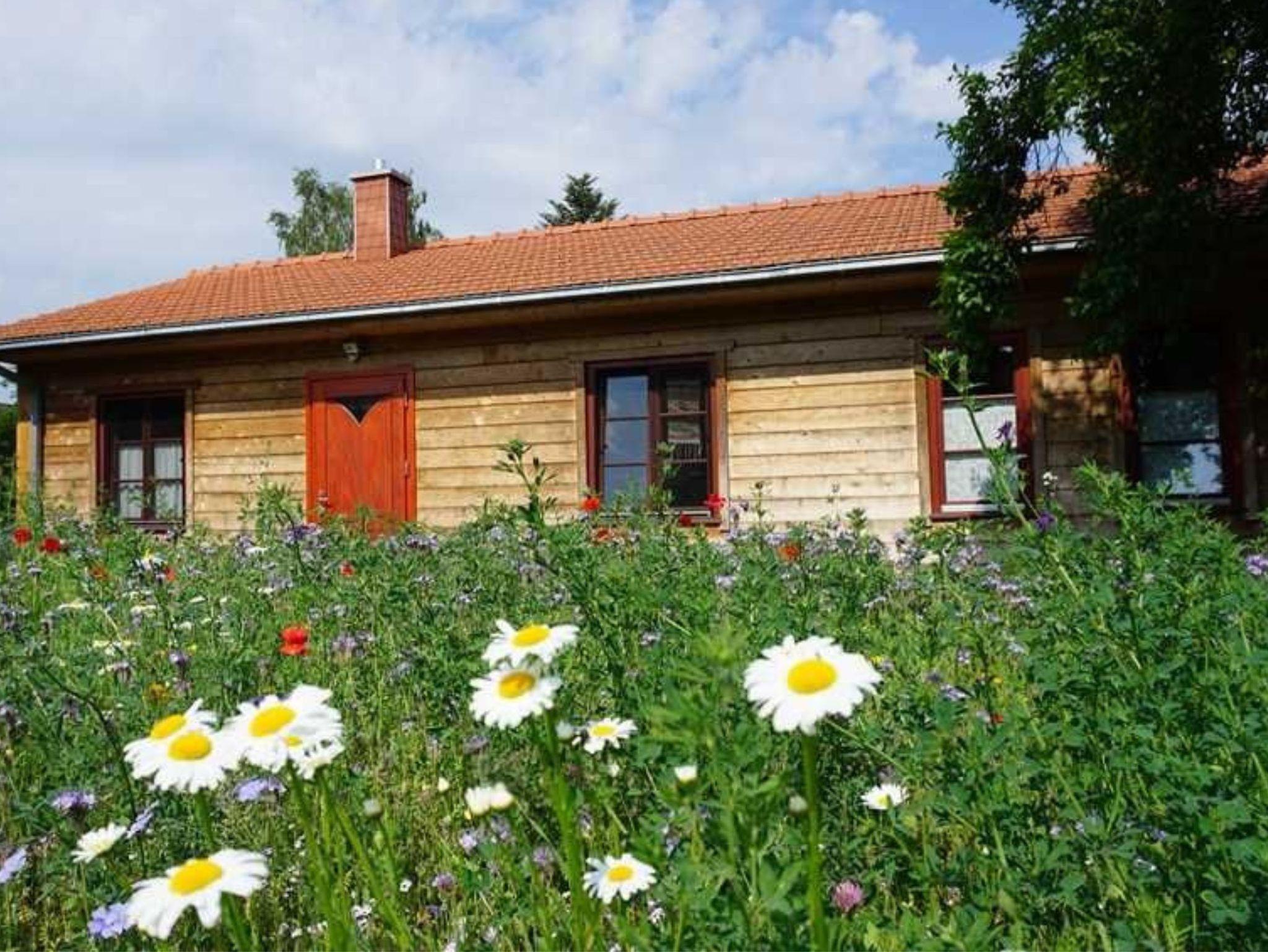 Gemütliches Zedernblockhaus-Einbettzimmer im ruhigen Dorf Hinrichshagen nahe Greifswald und Ostsee.