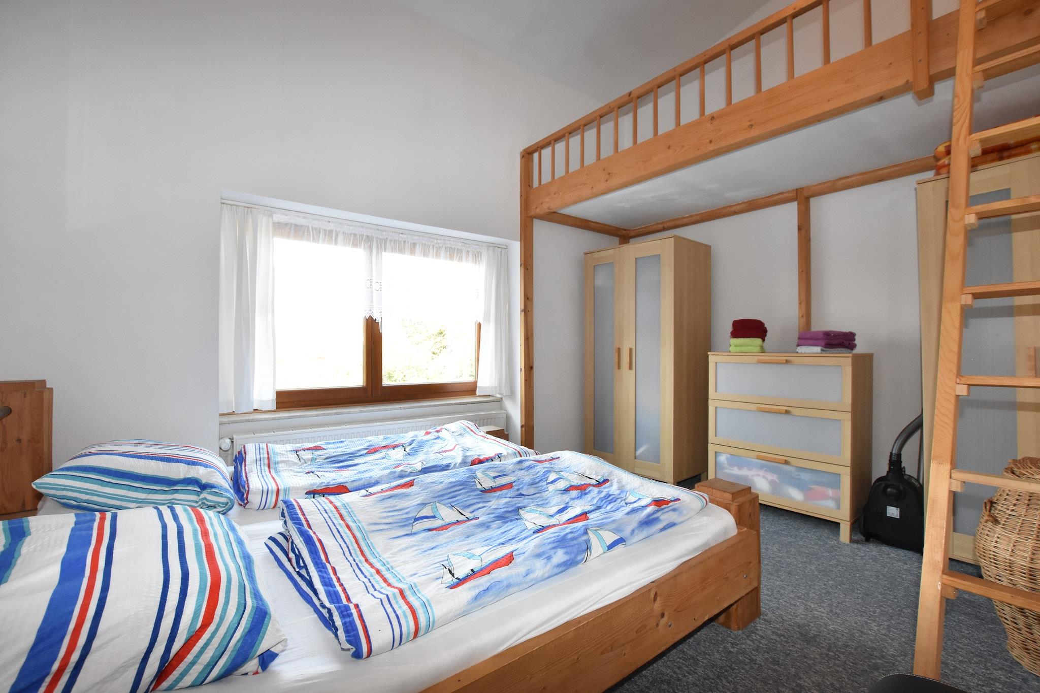 In der 1. Etage: (Eingang(über Außentreppe), Eingangshalle, offene Küche(Wasserkocher, Toaster, Kochherd(2 Kochplatten, Ceranfeld, elektrisch), Kaffeemaschine, Mikrowelle, Kühlschrank), Wohn/Esszimmer(TV(Flatscreen), Esstisch(3 Personen), Sitzecke), Schlafzimmer(Hochbett 2 Pers., Doppelbett king size), Badezimmer(Dusche, Waschbecken, Toilette), Radio, CD-Spieler, Heizung) Garten(Gemeinschaftliche Nutzung mit anderen Gästen, umzäunt), Fahrradabstellraum, Grill, Parkplatz, Liegestühle