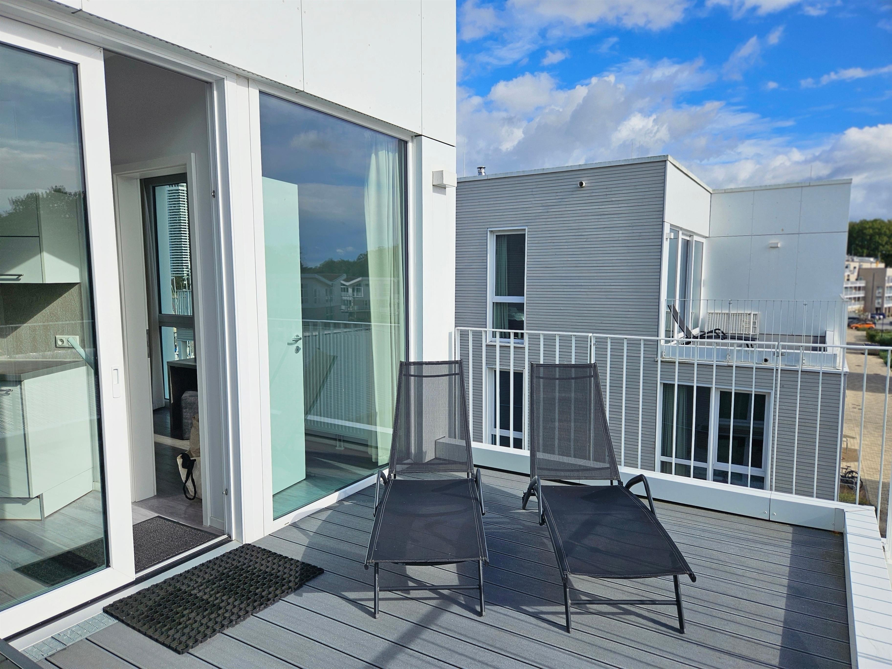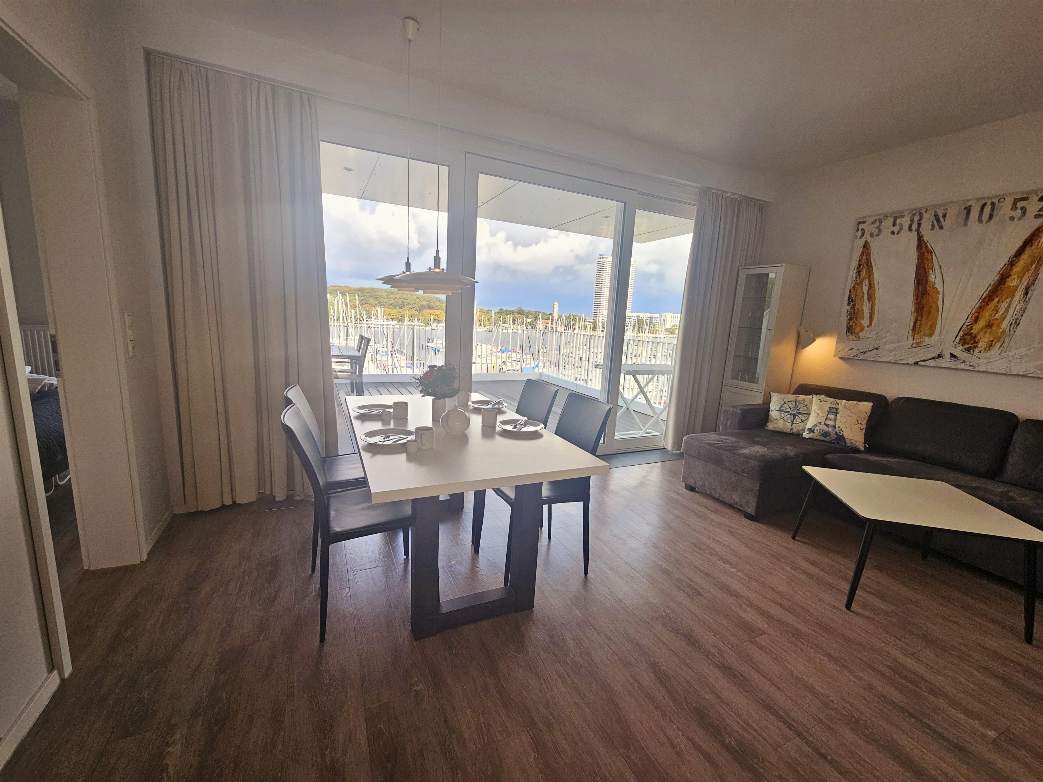 Genießen Sie eine exklusive Ferienwohnung mit Panoramablick auf den Passathafen und Ostsee in Travemünde.