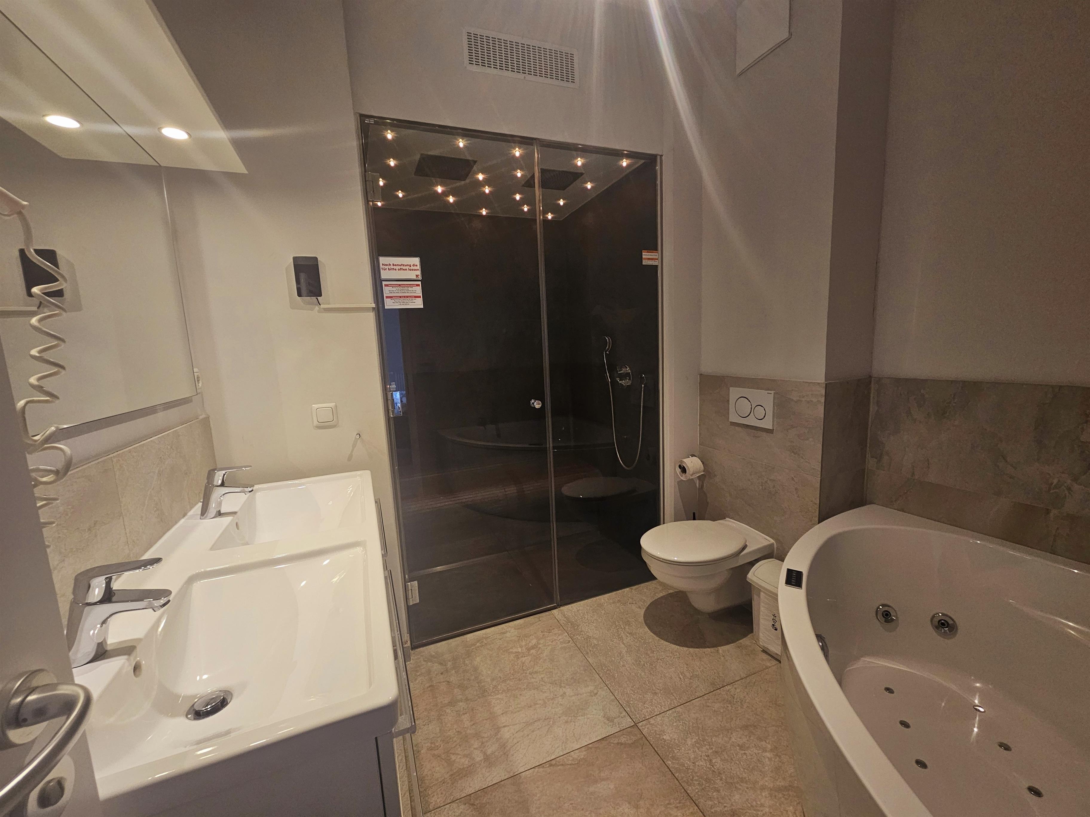 Die Wohnung ist stilvoll, hochwertig und modern eingerichtet. Ein besonderes Highlight ist ihr persönlicher Wellnessbereich mit Sauna, Whirlpool und Dampfbad mit integrierter Doppel-