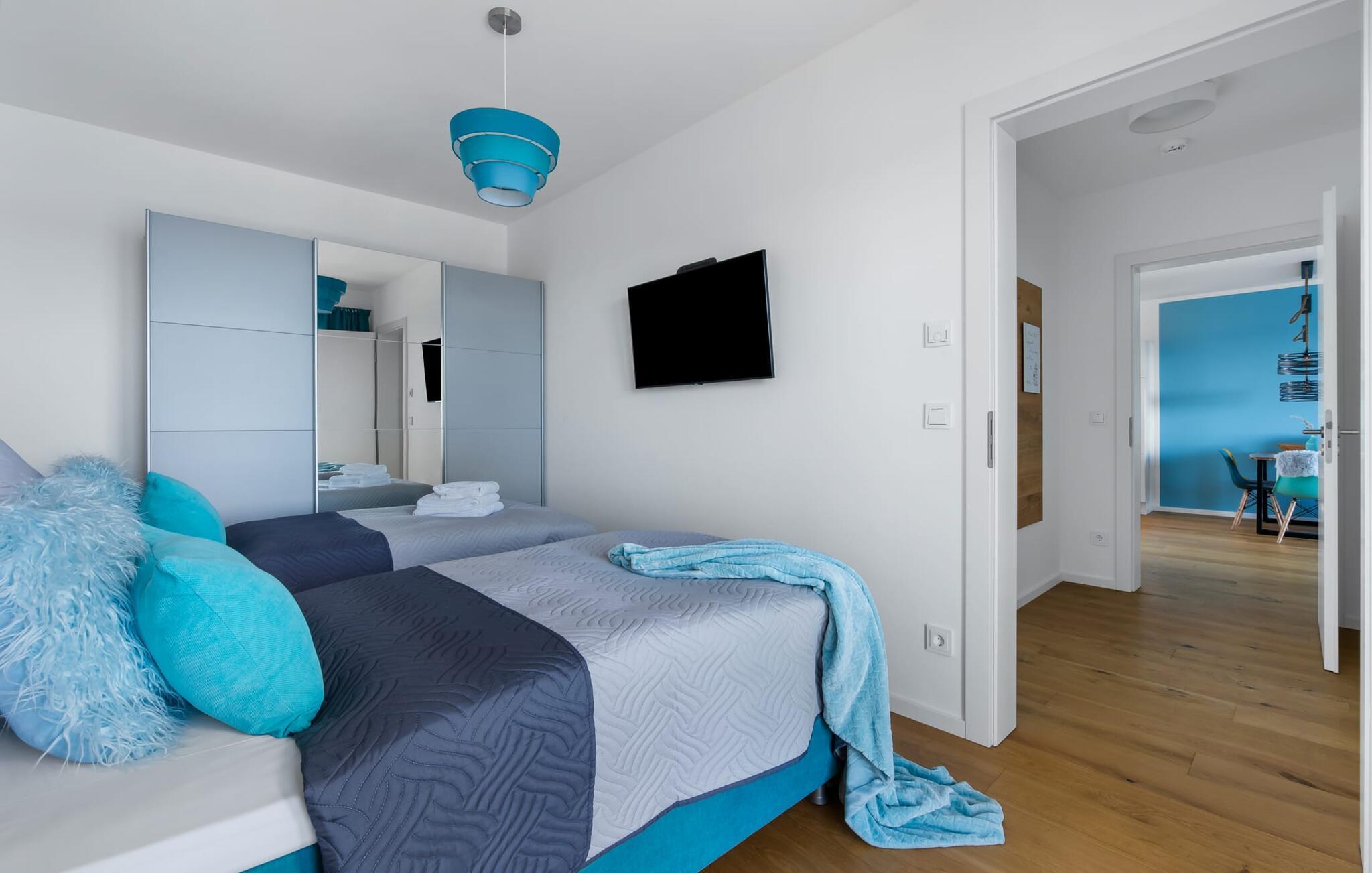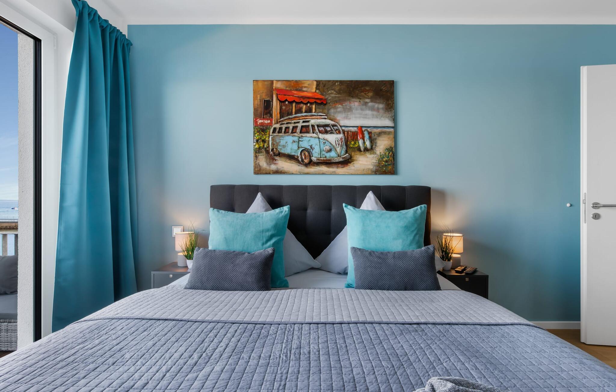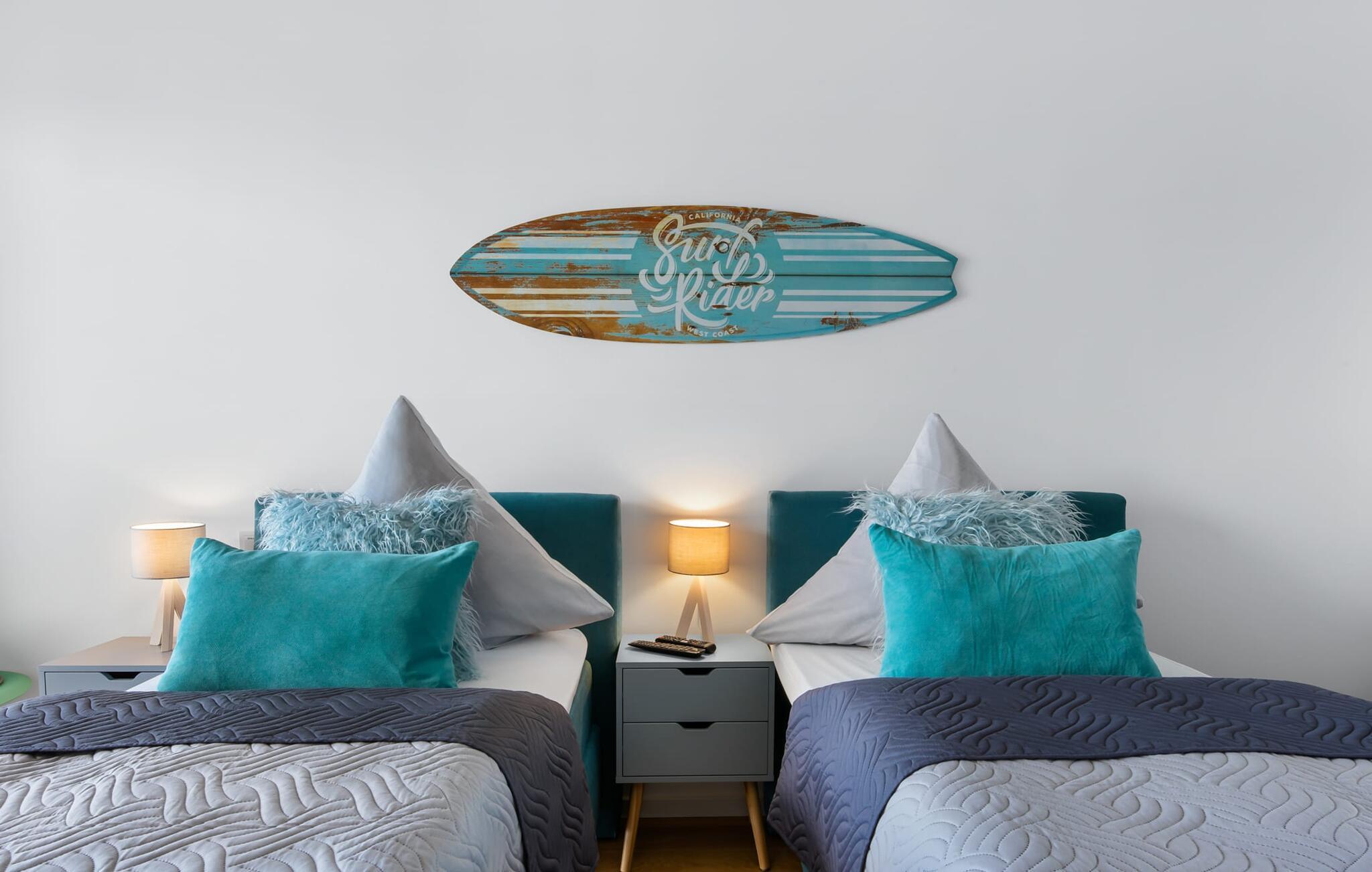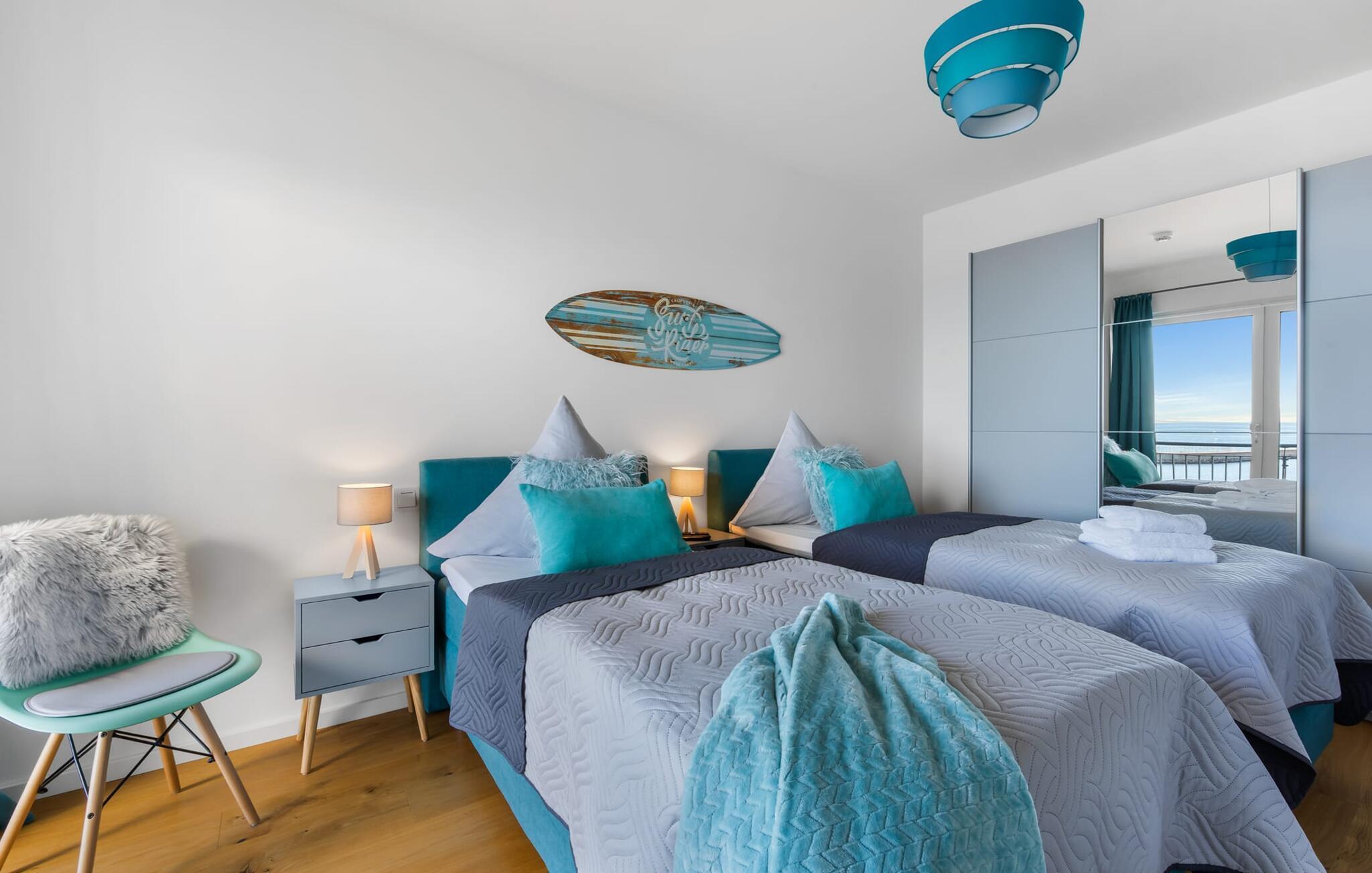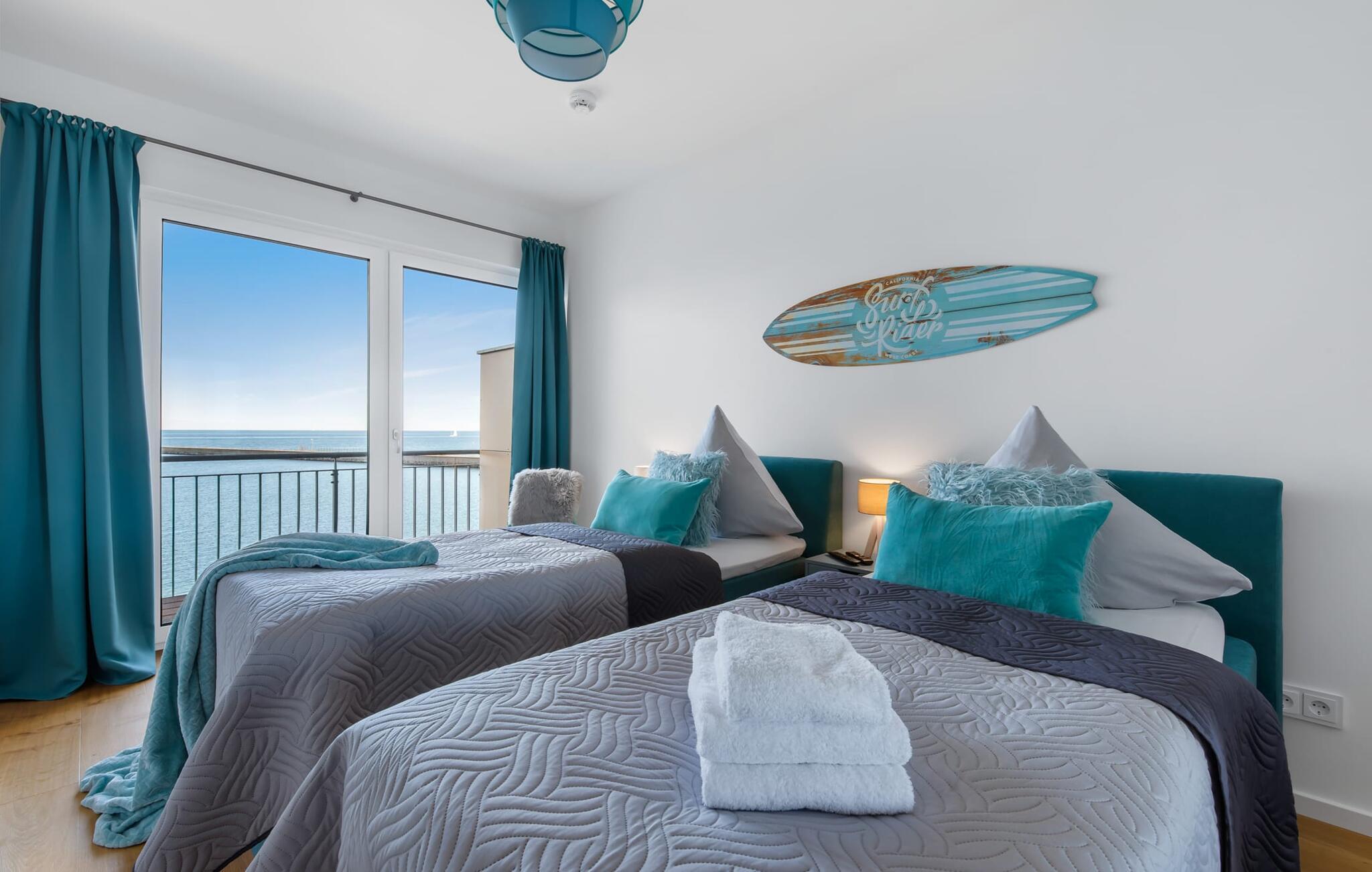 Komfort bieten auch die beiden Schlafzimmer, die jeweils mit einem Fernseher und Boxspringbetten ausgestattet sind. Ihr könnt euch entscheiden zwischen einem Doppelbett oder zwei Einzelbetten. Meerblick ist in beiden Schlafräumen garantiert und was gibt es Schöneres als damit einschlafen und aufwachen zu dürfen.