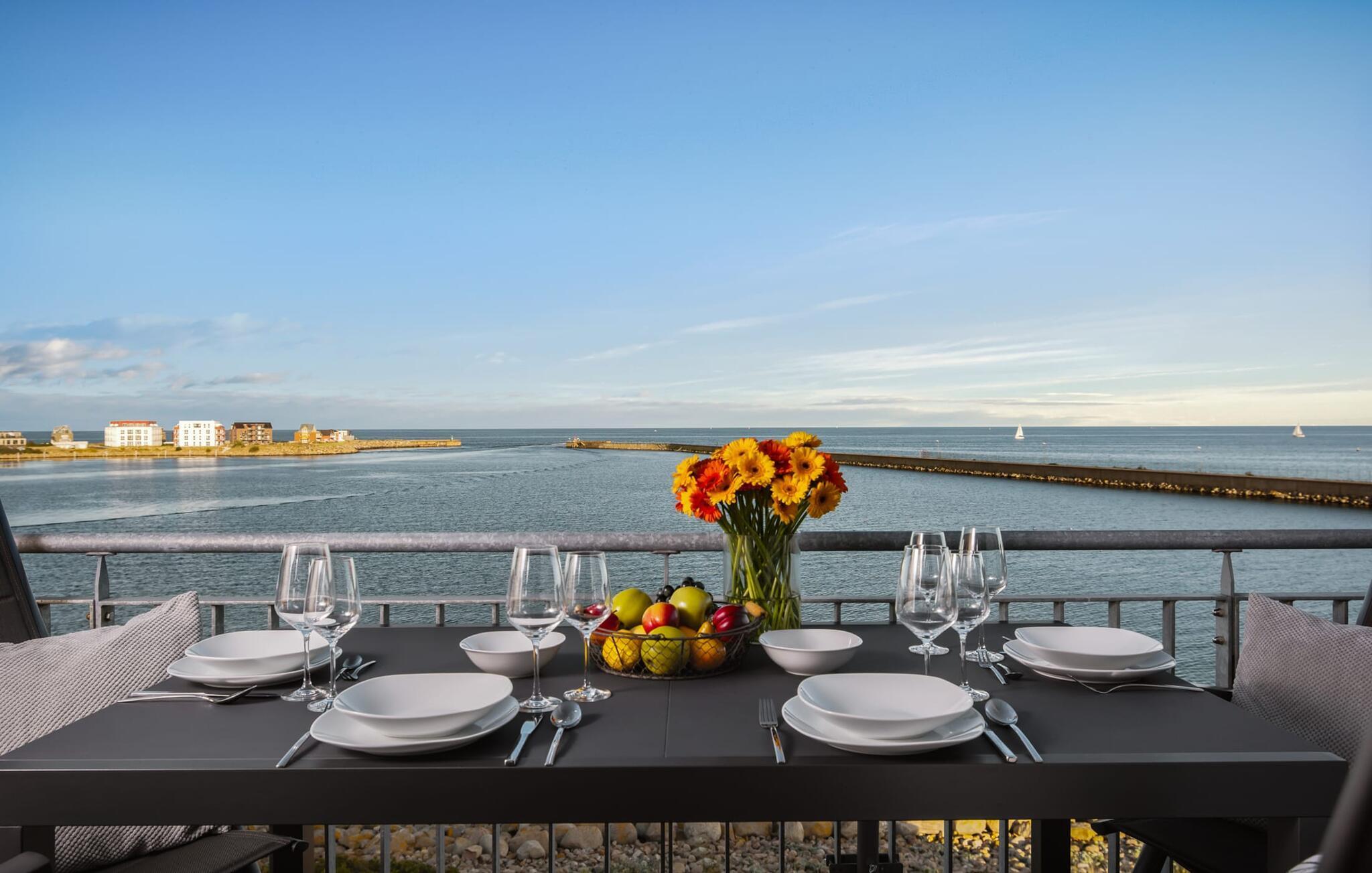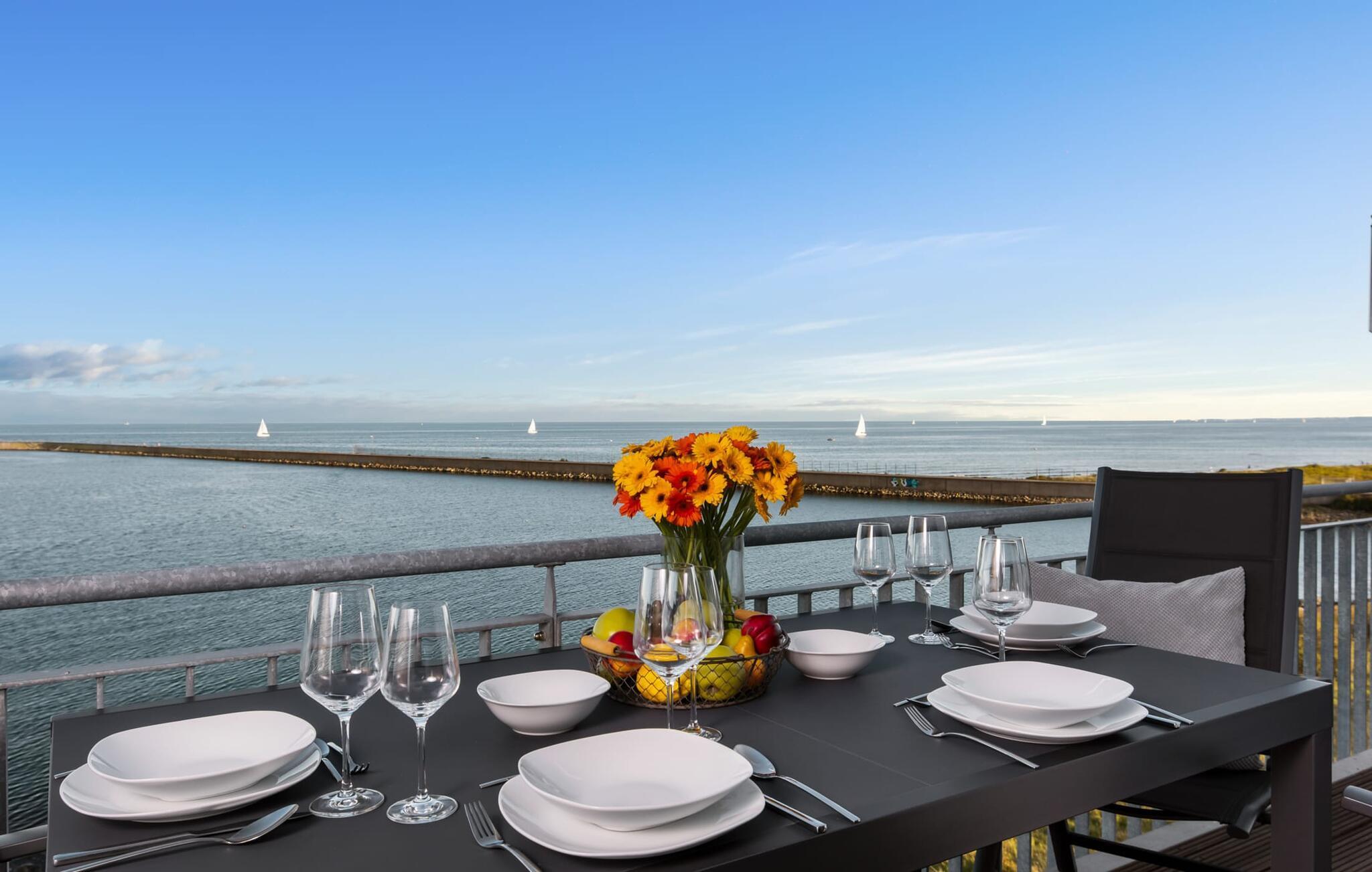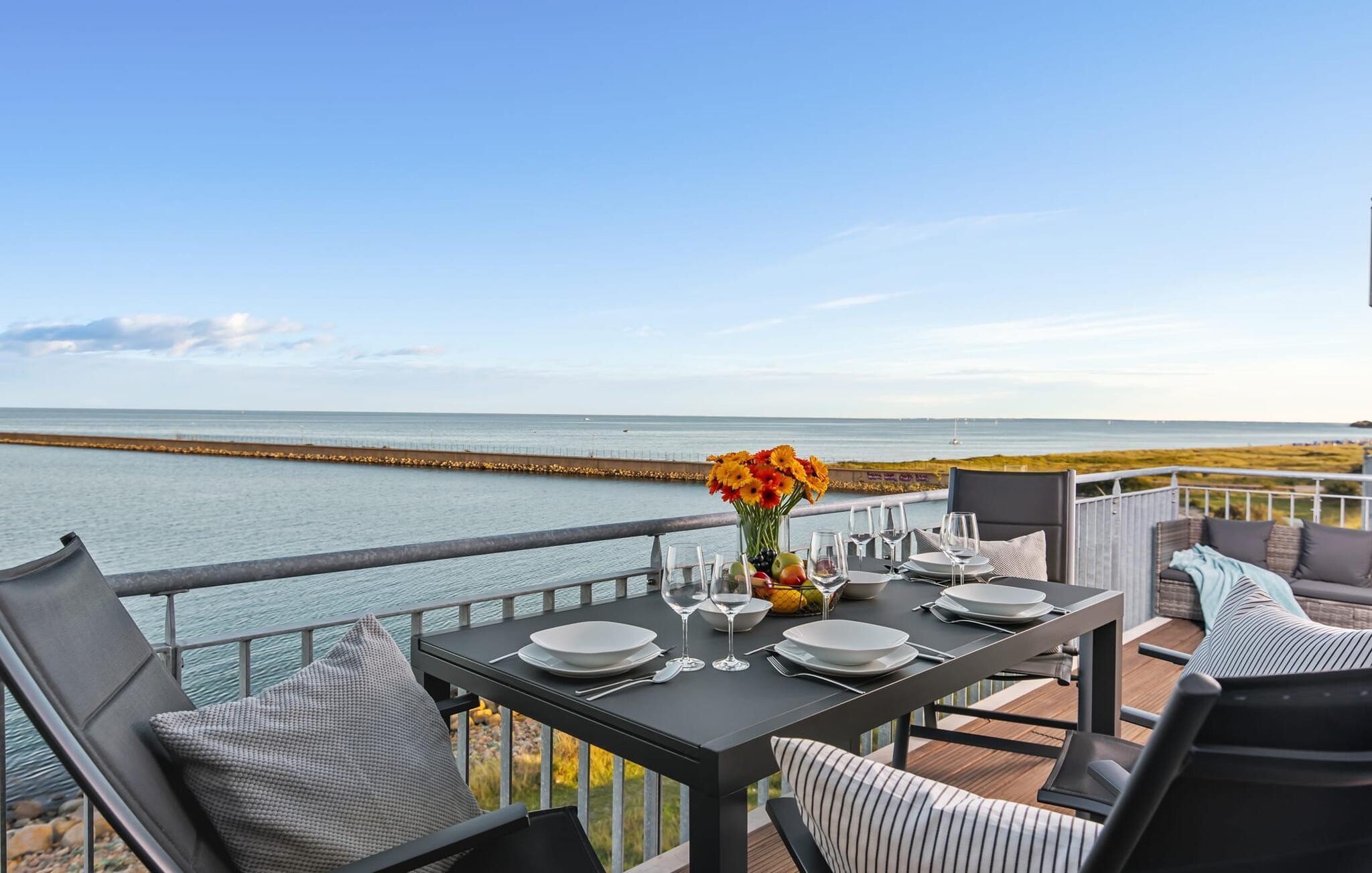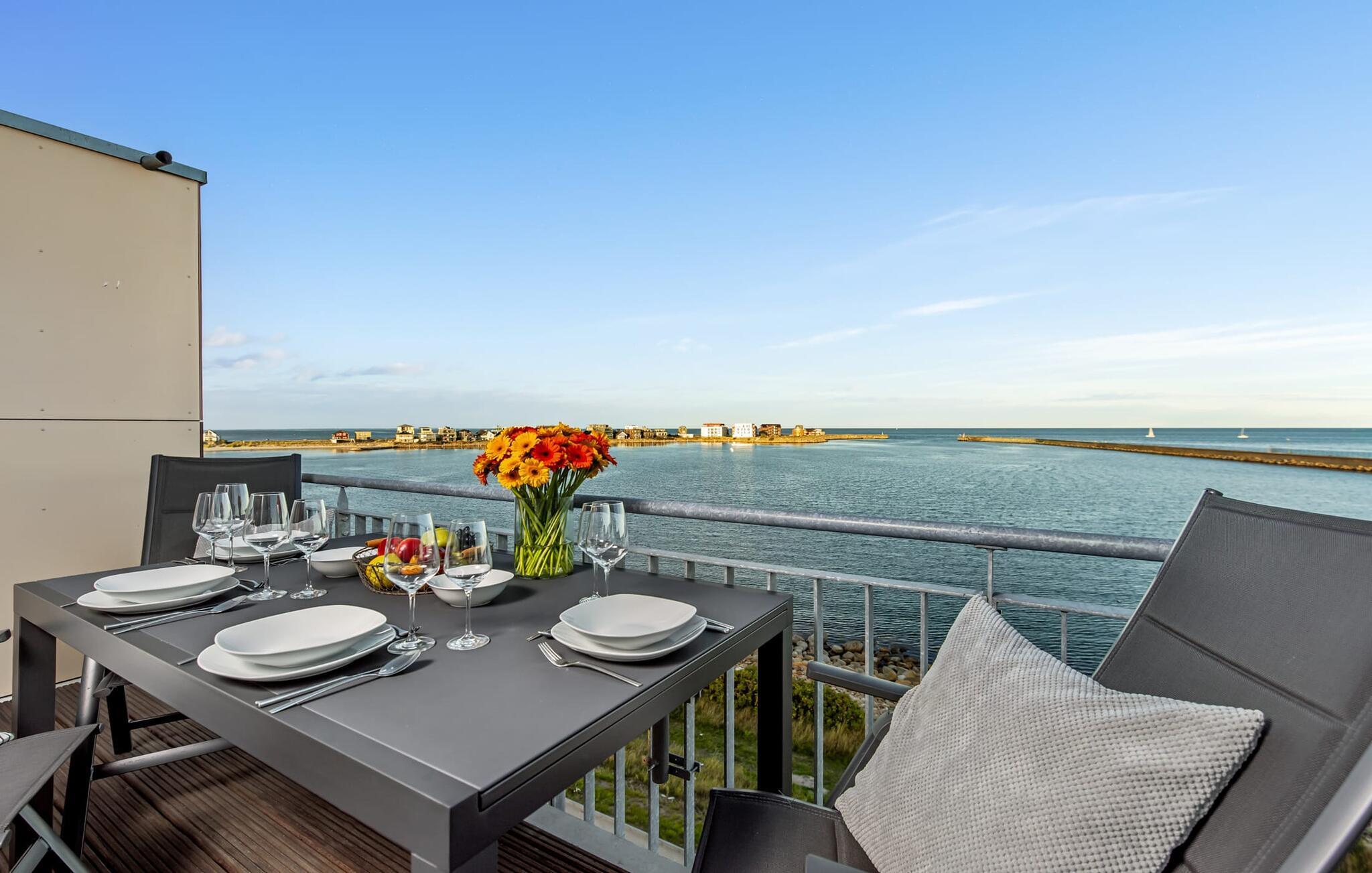 Ankommen, eintreten und aus allen Räumen und von der Terrasse über's Meer und auf die Hafeneinfahrt blicken - Erholung vom ersten Augenblick an.