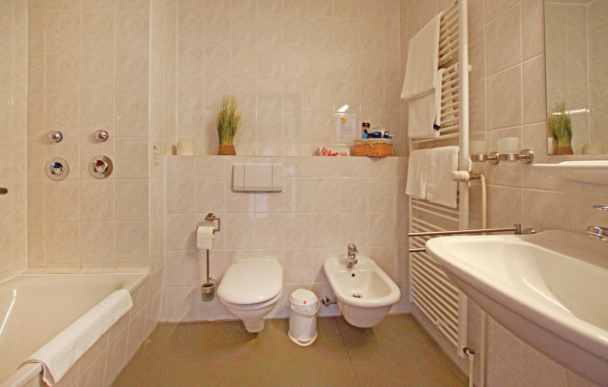 Badezimmer (nr. 1) - WC. Warmes und kaltes Wasser. Handdusche und Badewanne
