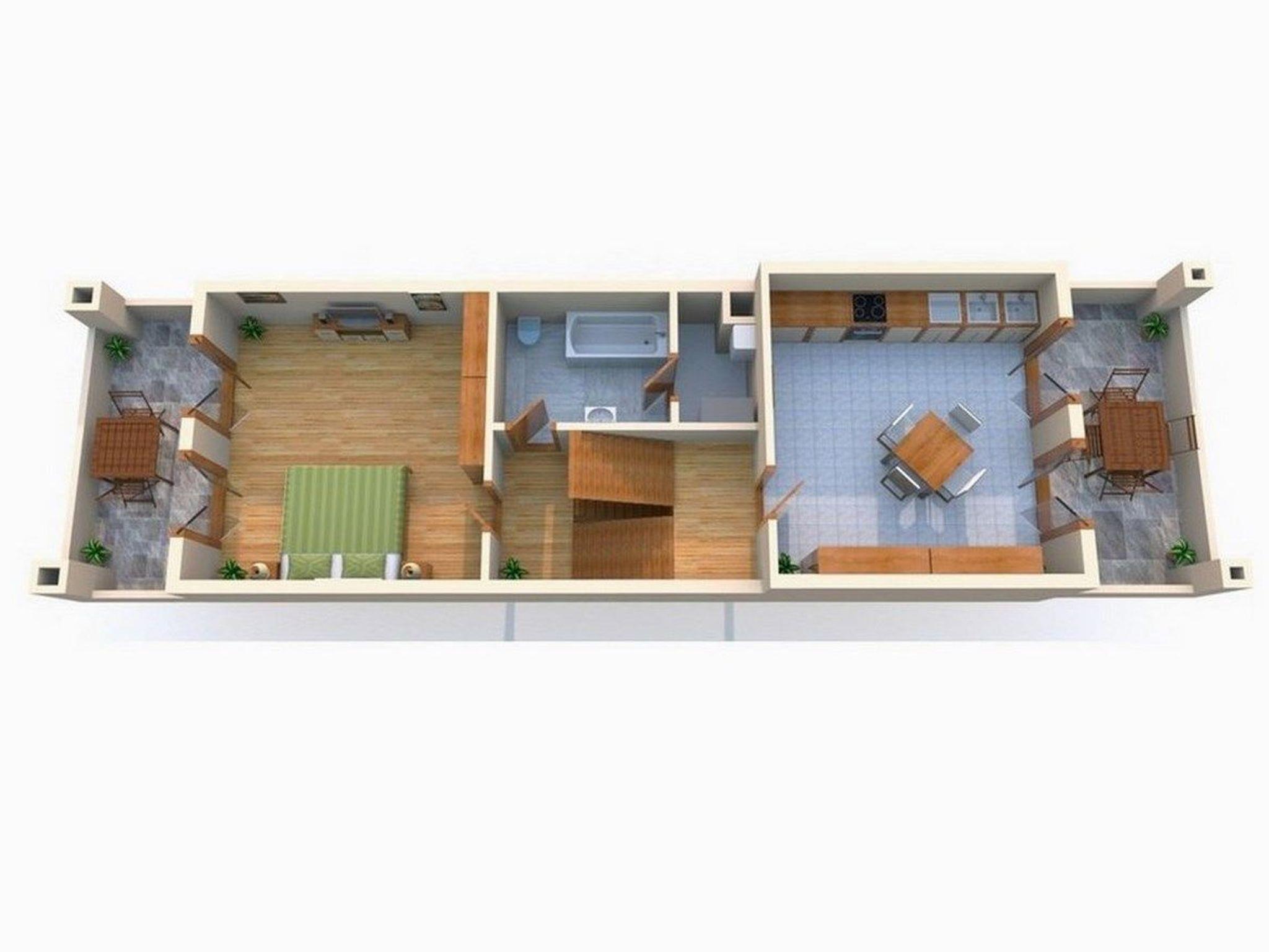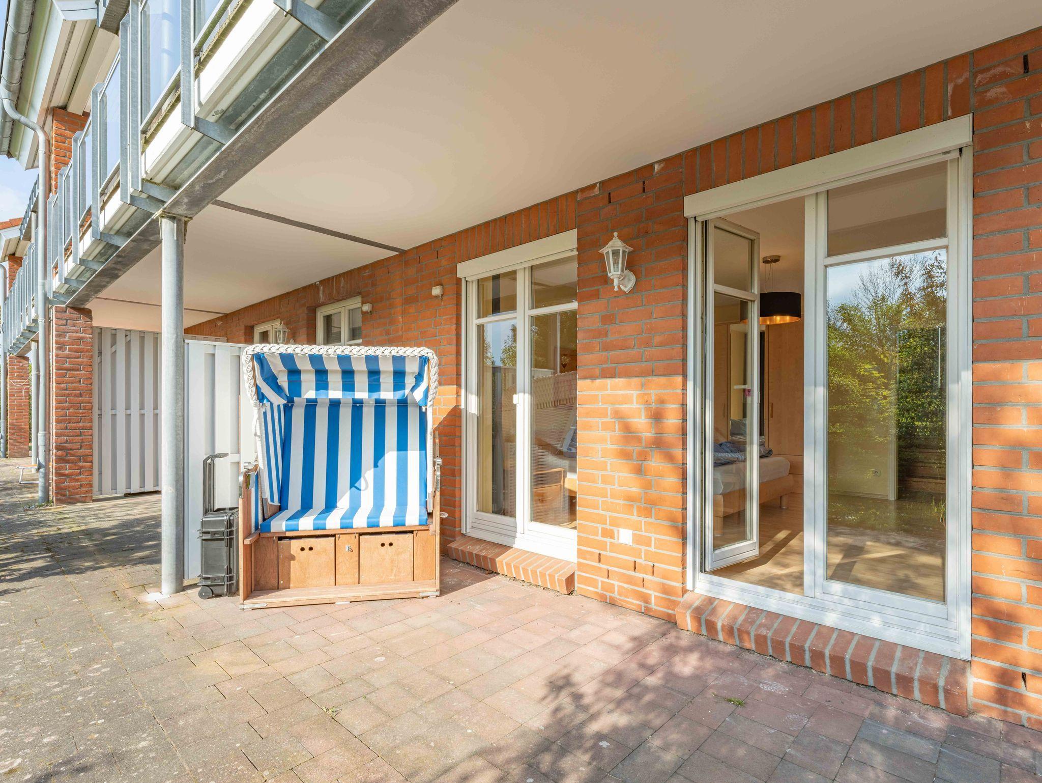 Erdgeschoss: Bad mit Dusche und WC, großer Flur, Schlafzimmer mit TV, Westterrasse und Strandkorb,