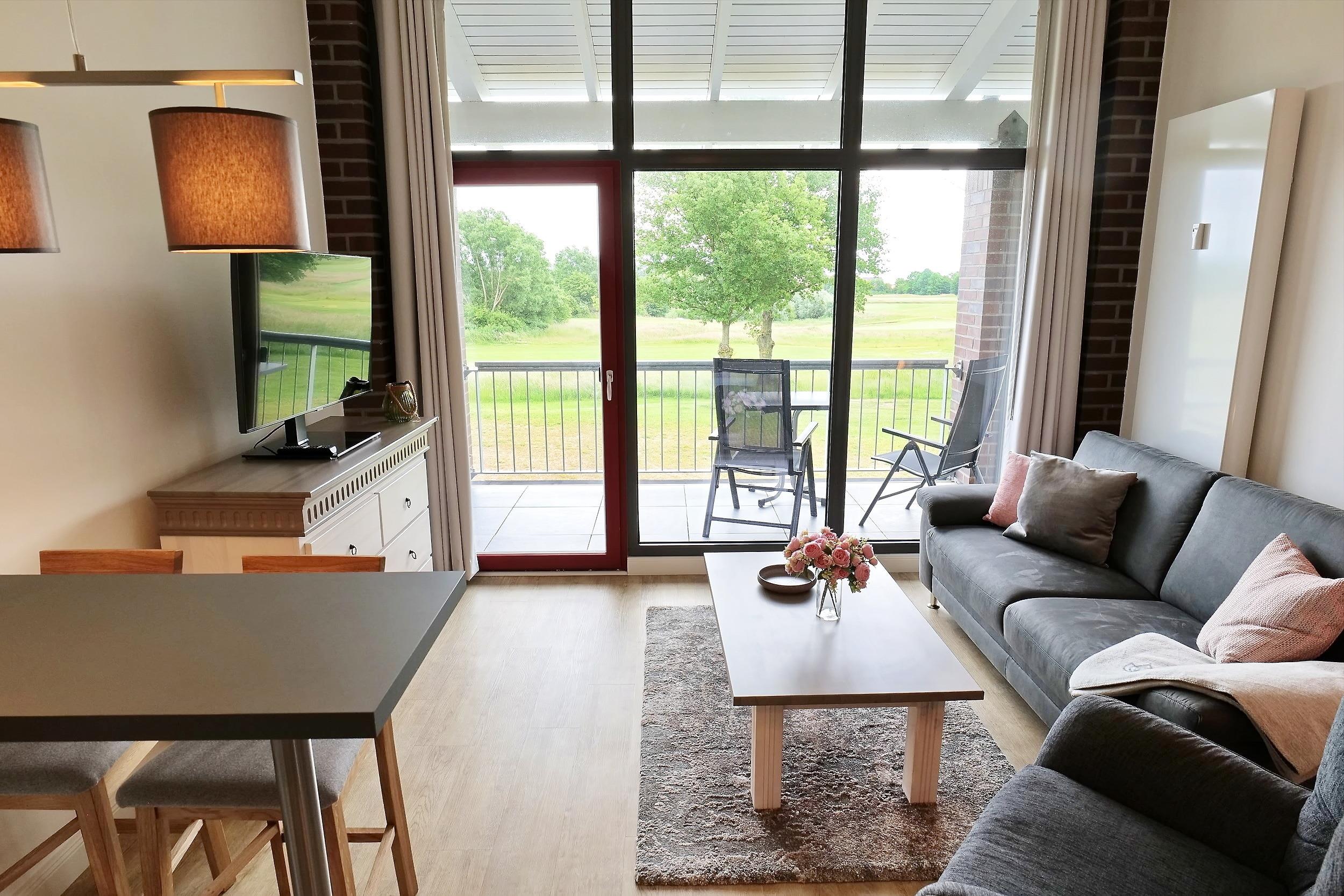 Erholsame Zeit zu zweit. Das 1-Zimmer-Komfort-Appartement Huk's No. 22, schenkt Ihnen eine erholsame Auszeit nahe zur Ostsee. Mit einer Wohnfläche von 40qm ist dieses Feriendomizil ideal geeignet für eine Belegung mit zwei Personen. Das Appartement befindet sich im 1. Obergeschoss des Hauses und besitzt eine, saisonal möblierten Balkon in östliche Richtung. Der helle und freundliche Wohn-/Essbereich empfängt Sie stilvoll möbliert mit einem Sofa, Beistelltisch sowie