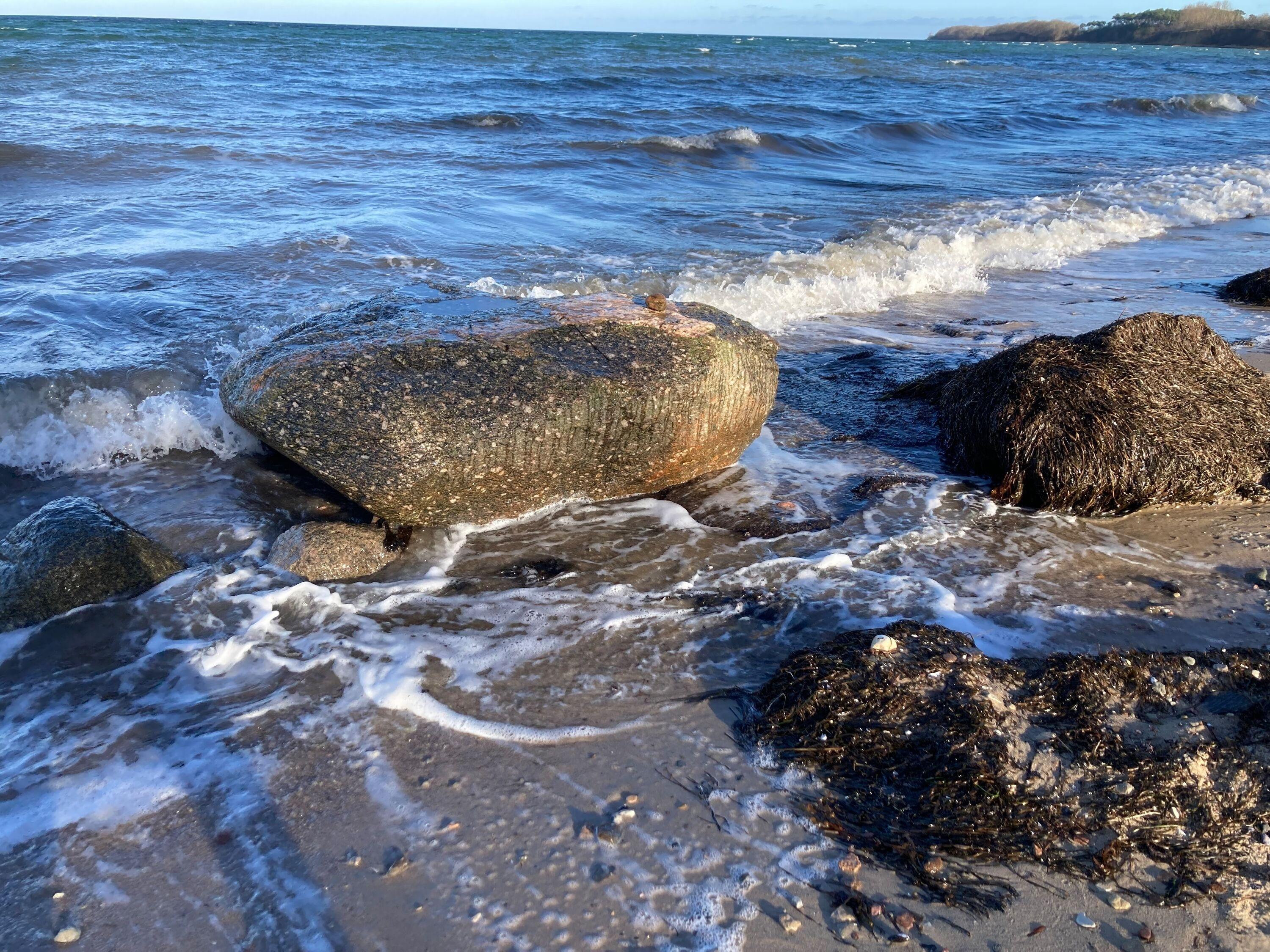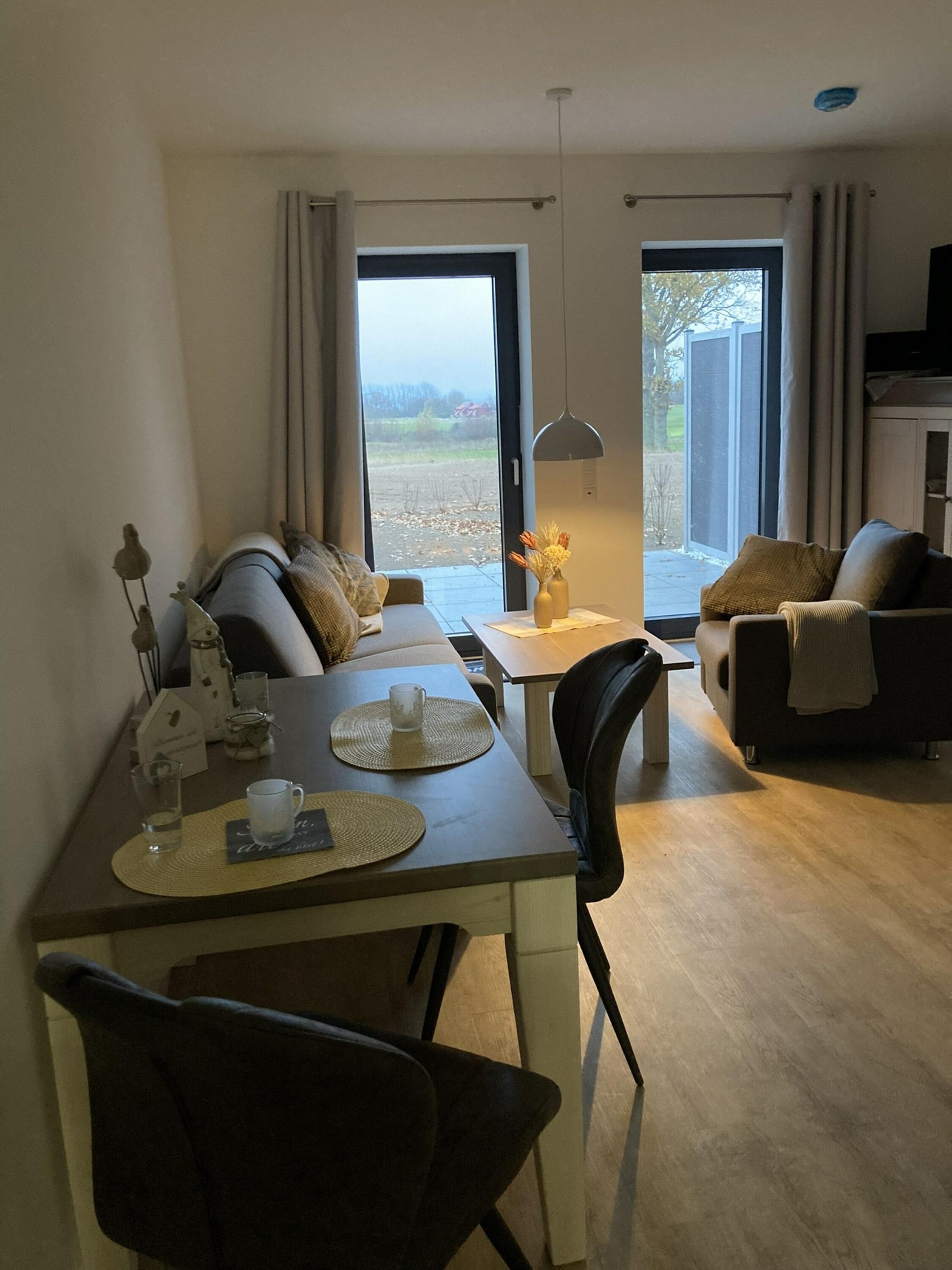 Die offene Küche, in der sich die Farben der nahen Ostsee widerspiegeln, erfüllt alle Erwartungen: Hochwertige Elektrogeräte: Herd (mit Induktionskochfeld und Backofen), Dunstabzug, Kühlschrank (mit TK-Fach) und Spülmaschine, aber auch Kaffeemaschine, Toaster und Eierkocher. Und neben Besteck und Geschirr auch Auflaufform, Teekanne, Tablett und div. andere kleine und große Ausstattungsgegenstände. Ihre Mahlzeiten können Sie an einem schönen Esstisch einnehmen.