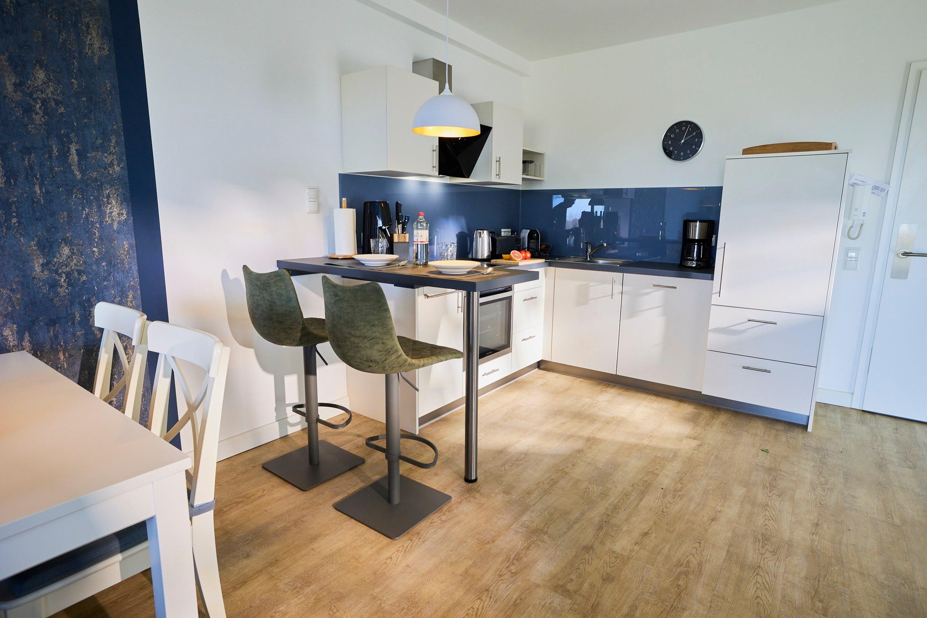 Das separate Schlafzimmer ist mit einem Kingsize-Bett ausgestattet, welches zum Träumen einlädt. Im Wohnzimmer steht eine gemütliche Schlafcouch für 2 weitere Personen zur Verfügung. In der vollausgestatteten Küche mit Kapselmaschine und Geschirrspüler können Sie köstliche Speisen zubereiten. Eine eigene Infrarotsauna steht Ihnen kostenfrei zur Verfügung und bietet Ihnen in der kalten Jahreszeit Wellnesskomfort.