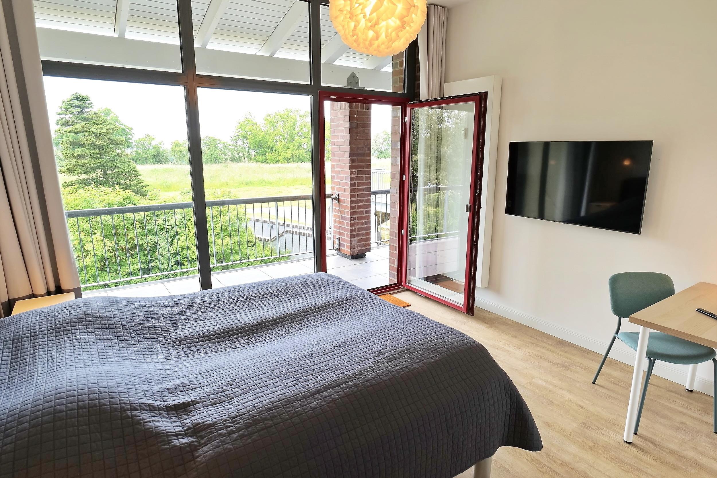 Das separate Schlafzimmer empfängt Sie mit einem bequemen Doppelbett (2,0 x 1,8 m) und ein im Wohnbereich vorhandenes Schlafsofa (2,0 x 1,6 m) bietet Schlafmöglichkeiten für insgesamt bis zu 4 Personen. Schlaf- und Wohnzimmer lassen sich abdunkeln. Im Wohn- wie auch im Schlafzimmer befindet sich jeweils ein TV-Gerät. WLAN-Nutzung ist selbstverständlich kostenlos.